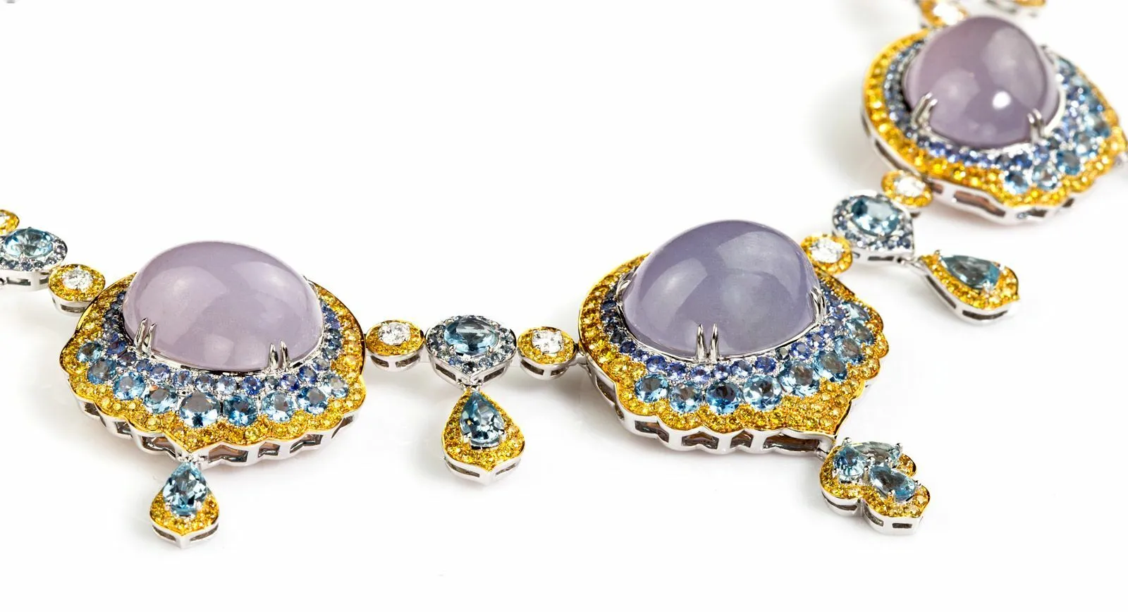 I mixed clashing colours in my designs in the same way as Cartier did in the “tutti frutti” Collection. Imagine the colours of India in combination with Mughal Palaces décor elements and some high-end precious stones set in relatively classic designs and enriched with oriental flare – this is what the Breakfast in Jaipur collection is like.