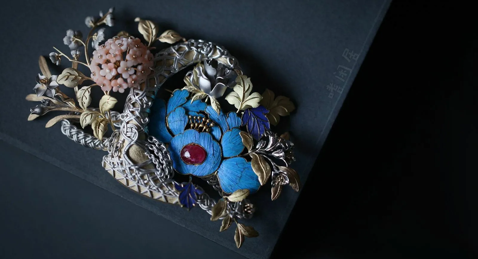 Filigree inlaying, also known as “fine gold art”, combines two intricate jewellery making techniques: filigree (thread weaving) and inlaying. An incredibly complex artform, the tradition first appeared in China during the Shang Dynasty (1600-1046 BC). Its popularity grew during the late Western Han Dynasty (206 BC-220 AD), reaching a peak during The Ming Dynasty with the creation of many masterpieces. It remained a beloved artform in the subsequent Qing Dynasty – the last dynasty in Chinese history. The technique involves delicate metalwork, soldering twisted threads of gold, silver and copper together and arranging them in artistic compositions set with mounted gems. Jewels created using the technique were reserved exclusively for royal families and the imperial class, who were the only ones allowed to own the finest designs made from the highest-quality materials. Following the collapse of the Qing Dynasty, master goldsmiths who worked at the palace creating gold and silver treasures for royalty escaped to Beijing, where they set up studios in southern Beijing specialising in filigree inlay. Today, there are very few craftsmen skilled in this rare art, but it has not yet died out completely.