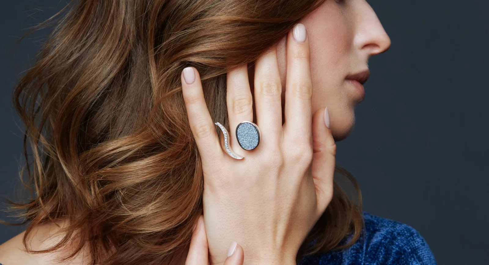Crystallised osmium is a new high-end jewellery material that serves as an inlay, Scarlett Clauss explained in Hong Kong. It has a magnificent sparkle, especially in sunlight, and looks just like a gemstone or a diamond when set into jewellery.