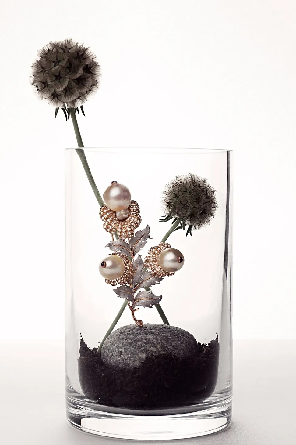 Fly brooch by Buccellati in openwork white gold, “rigato” engraved, set with a pearl and 108 rose-cut diamonds; Van Cleef&Arpels Socrate Bouquet ring with 132 round diamonds totalling 2.72 carats set in white gold