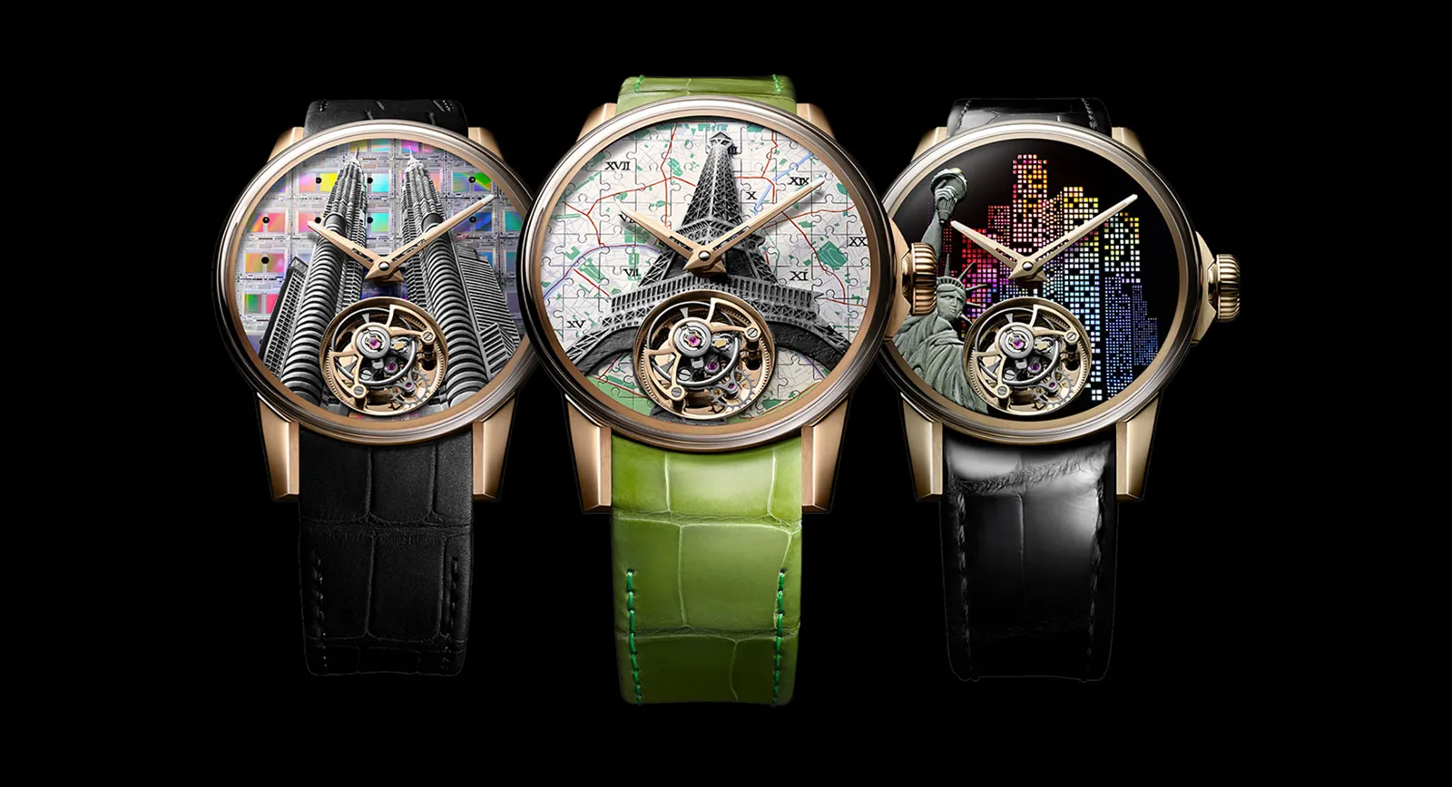 The KaterinaPerez.com team hails from across the globe, so a selection of luxury, beautifully crafted watches inspired by international destinations is right up our street! The Louis Moinet Around the World in Eight Days collection is all about distilling the essence of a city and immortalizing it on the wrist through enamel, marquetry, miniature painting, and engraving.
