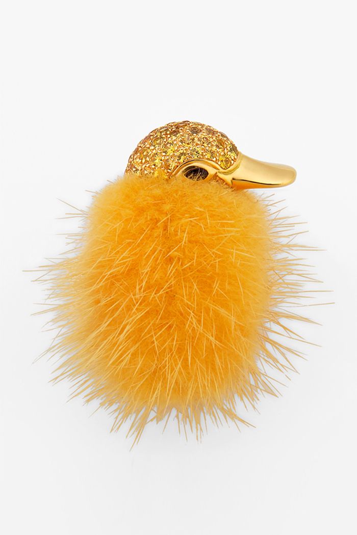Similarly distinctive were the gold pieces made with mink “Mink Darlings” showcased by Marchak Jewellery in Basel. A hedgehog ring, a duckling brooch, a mouse brooch and (most enchantingly) a “teddy bear” brooch. This is not a new collection but it includes jewels that you’d want to wear every winter as you sit round recalling the Russian folk tales that feature the very animals which inspired the pieces.