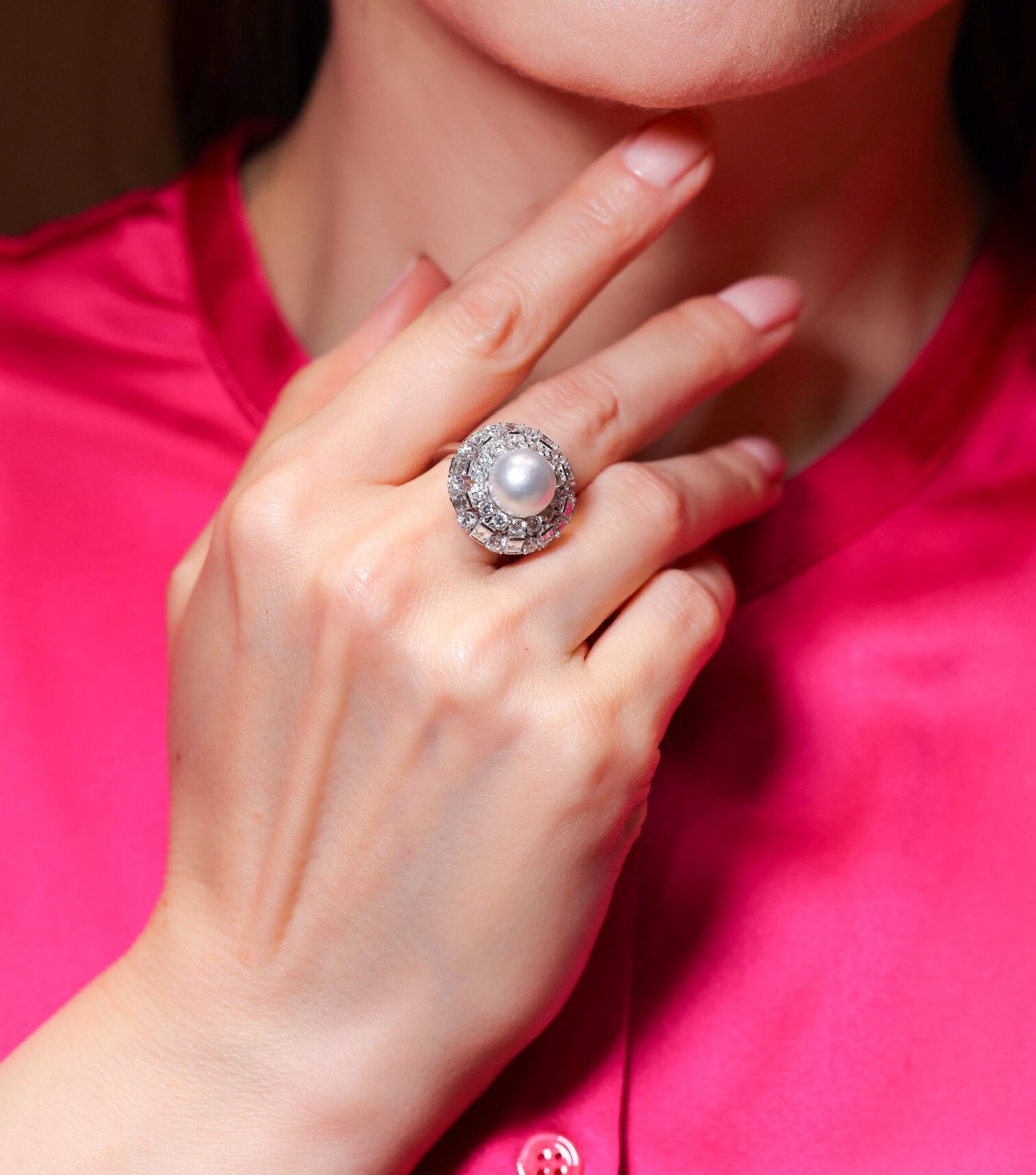 This ring showcases a natural saltwater pearl weighing 32.03 chow
