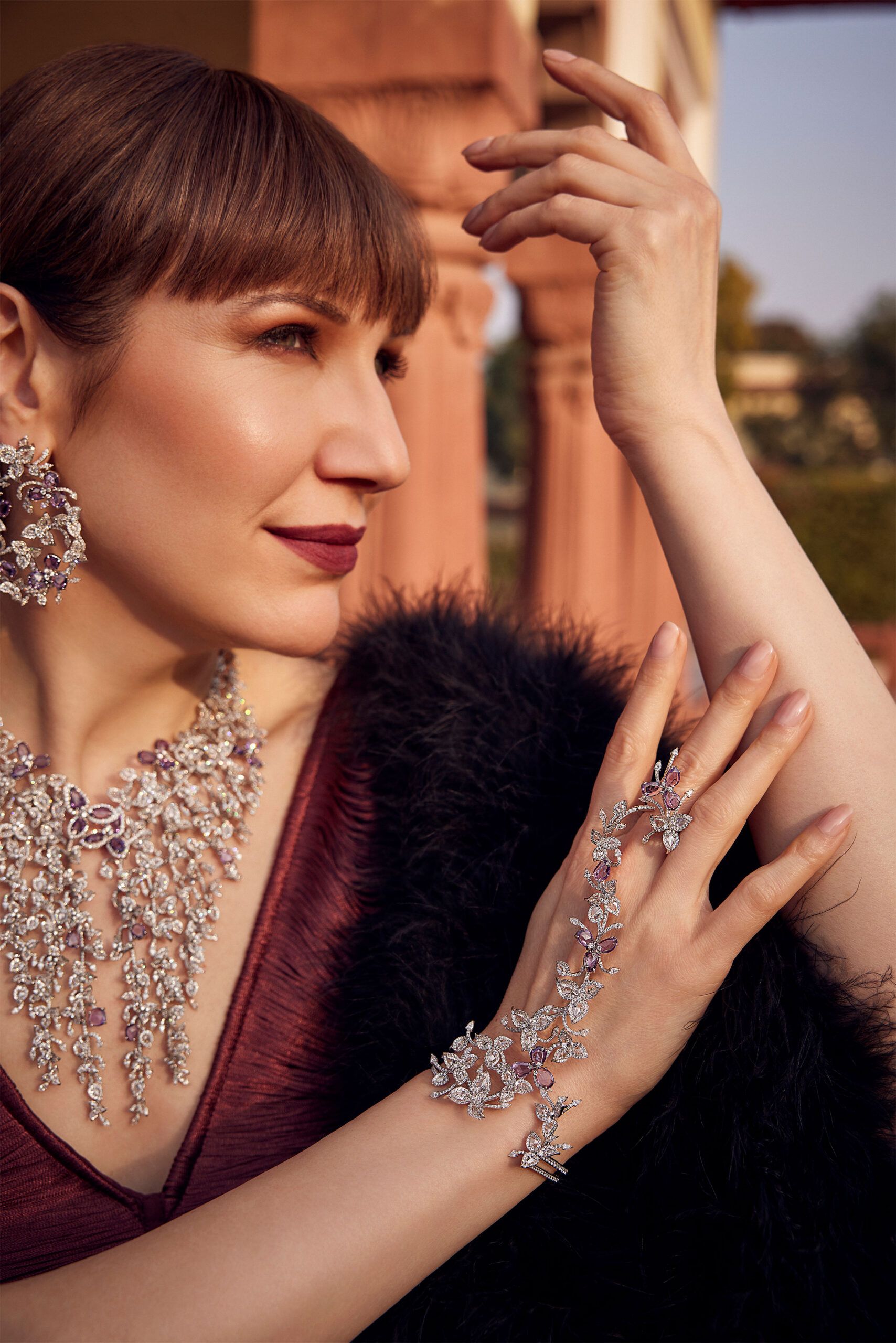 Defined by clean lines, precise detailing and graceful proportions, Katerina wears striking ruby and diamond creations by Delhi-based Hazoorilal Legacy Jewellers