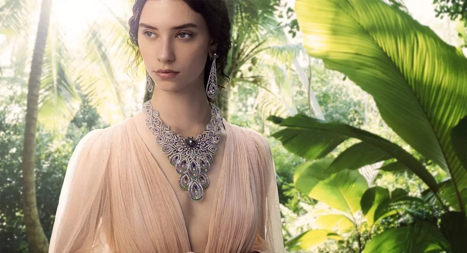 Earlier this year, Chopard again made its mark at the Cannes Film Festival with a suite of 75 jewels entitled “Chopard Loves Cinema”. The collection takes a different approach to animals by using them to reminisce on famous movies and cartoons. For example, there’s a nod to 101 Dalmatians with a canine cuff of white and black diamonds decorated with six 3D spotty dogs with blue sapphire eyes. There’s also a pair of fish earrings with lightweight titanium tailfins that move when worn. The fact they’re studded with brilliant green and blue gems, decorated in yellow gold, and topped with ‘air bubble’ gemstone beads only adds to the oceanic allure.