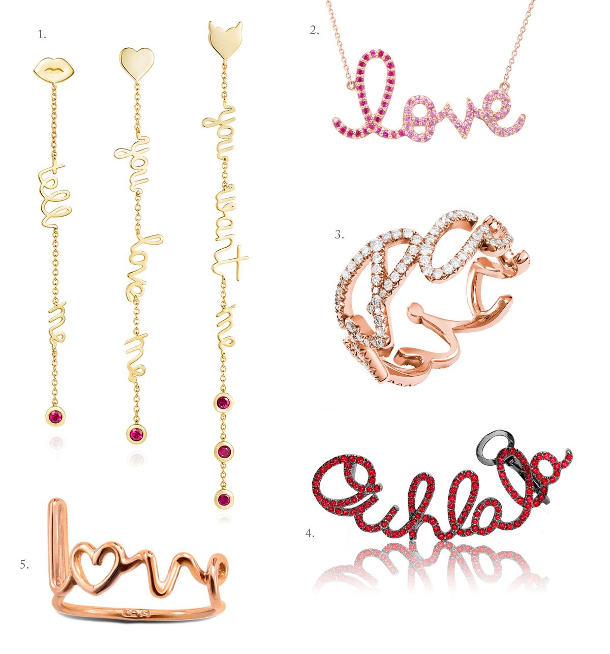 Rosanne Karmes, the founder of Sydney Evan, has made several delicate pink gold rings and pendants with diamonds and multi-coloured sapphires that have the words “Love” and “I love you” on them. If you want something designed without any stones, then you will find the ideal gift at Solange-Azagury Partridgе: a pure gold ring or pedant with “Love” written on it.