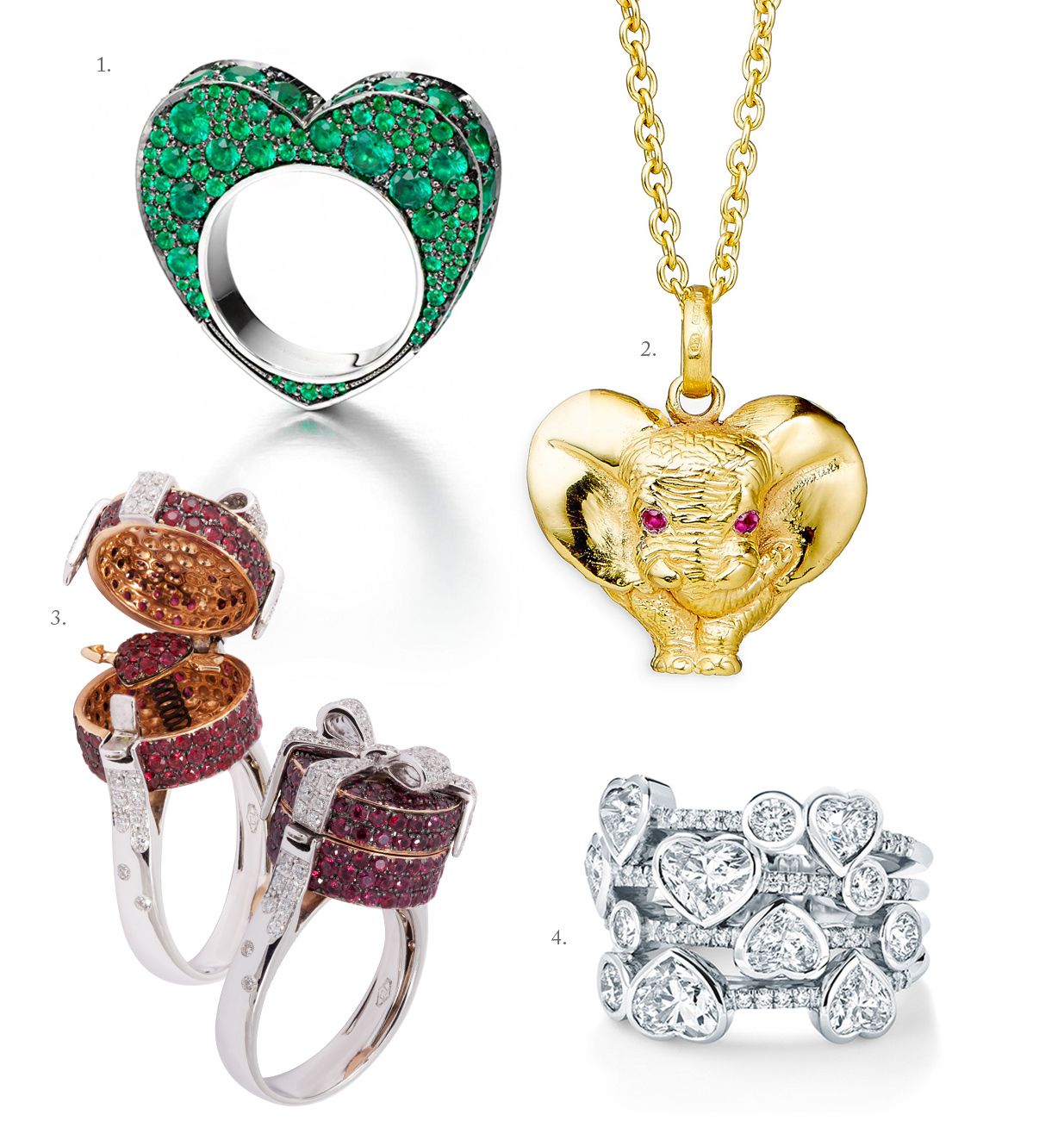 The decorative motif of a heart shape appears so often in the jewellery art of different periods that it would seem all variations on this theme have already been exhausted. Nonetheless, contemporary designers haven’t stopped finding new and interesting solutions. For example, Jessica McCormack’s rings are entirely encrusted with emeralds or rubies and made into flat hearts with a hole cut in the middle for the finger. British jewellery company Boodles offers the chance to adorn her finger with an entire cascade of diamond hearts in total weighing more than 3 carats which are carefully fixed to the platinum Waterfall ring.