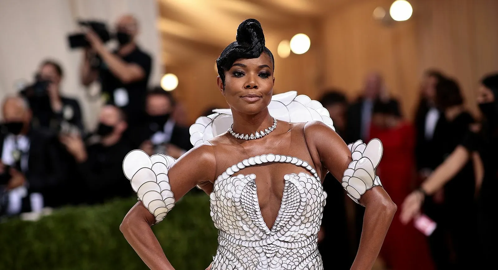 At the Met Gala 2021 from left to right: Michaela Coel in Nikos Koulis, Tracee Ellis Ross in Tiffany & Co., and Amanda Gorman in Chopard with a crown by Jennifer Behr