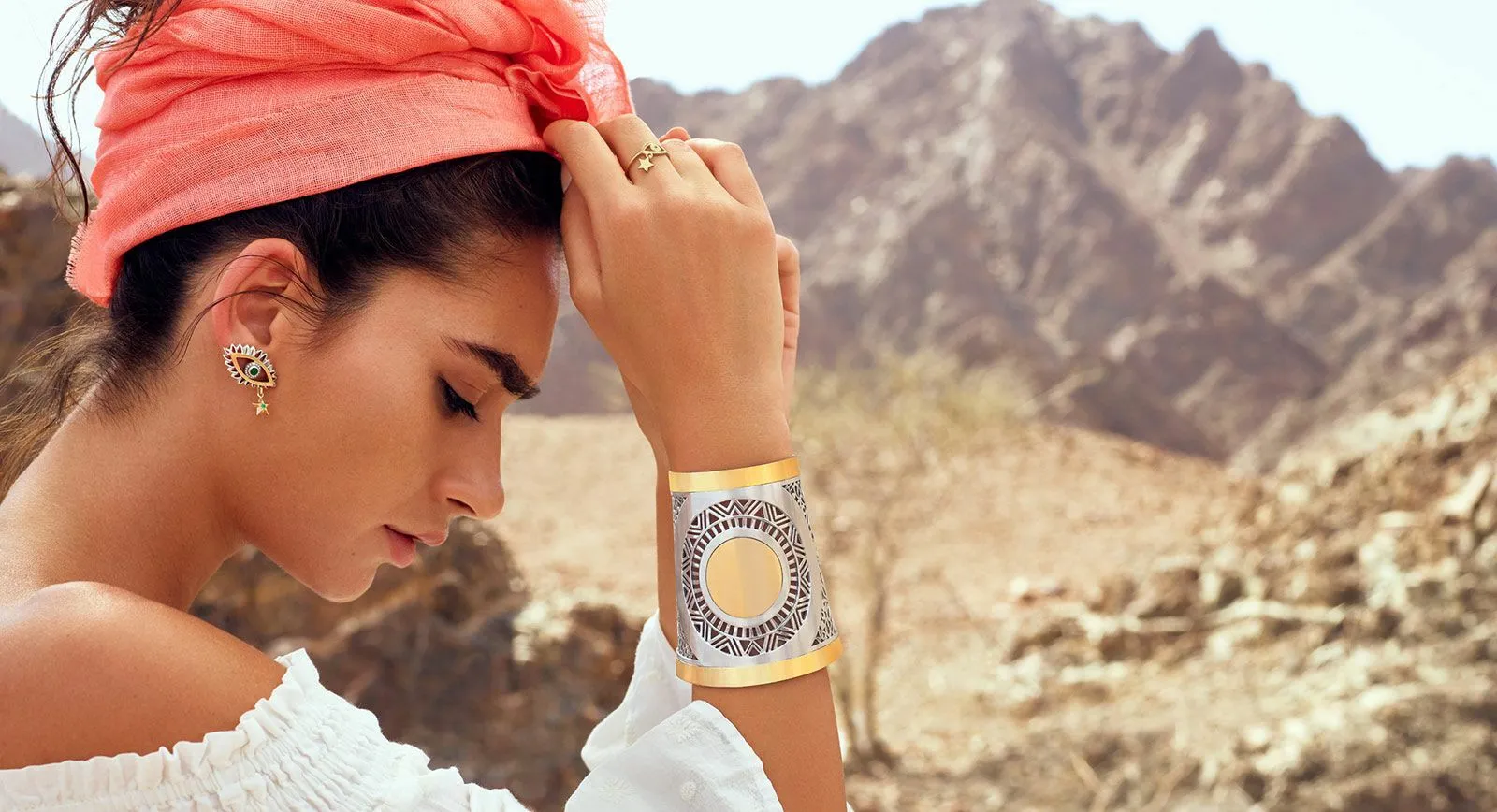 To the left of the boutique entrance, there is a staircase leading to a VIP showroom, where one can discuss bespoke orders, as well as try jewellery on in a more relaxed atmosphere. It’s there that a tray with the latest pieces from The Gypsy collection was waiting for me. It turns out that Amina drew on inspiration from the cultures of several different countries while designing earrings, bracelets, rings, and necklaces. While trying them on I felt as though I had taken a magical journey through the deserts of Egypt, the plains of North Africa, India, South Asia and even along the terres of the Ottoman Empire.