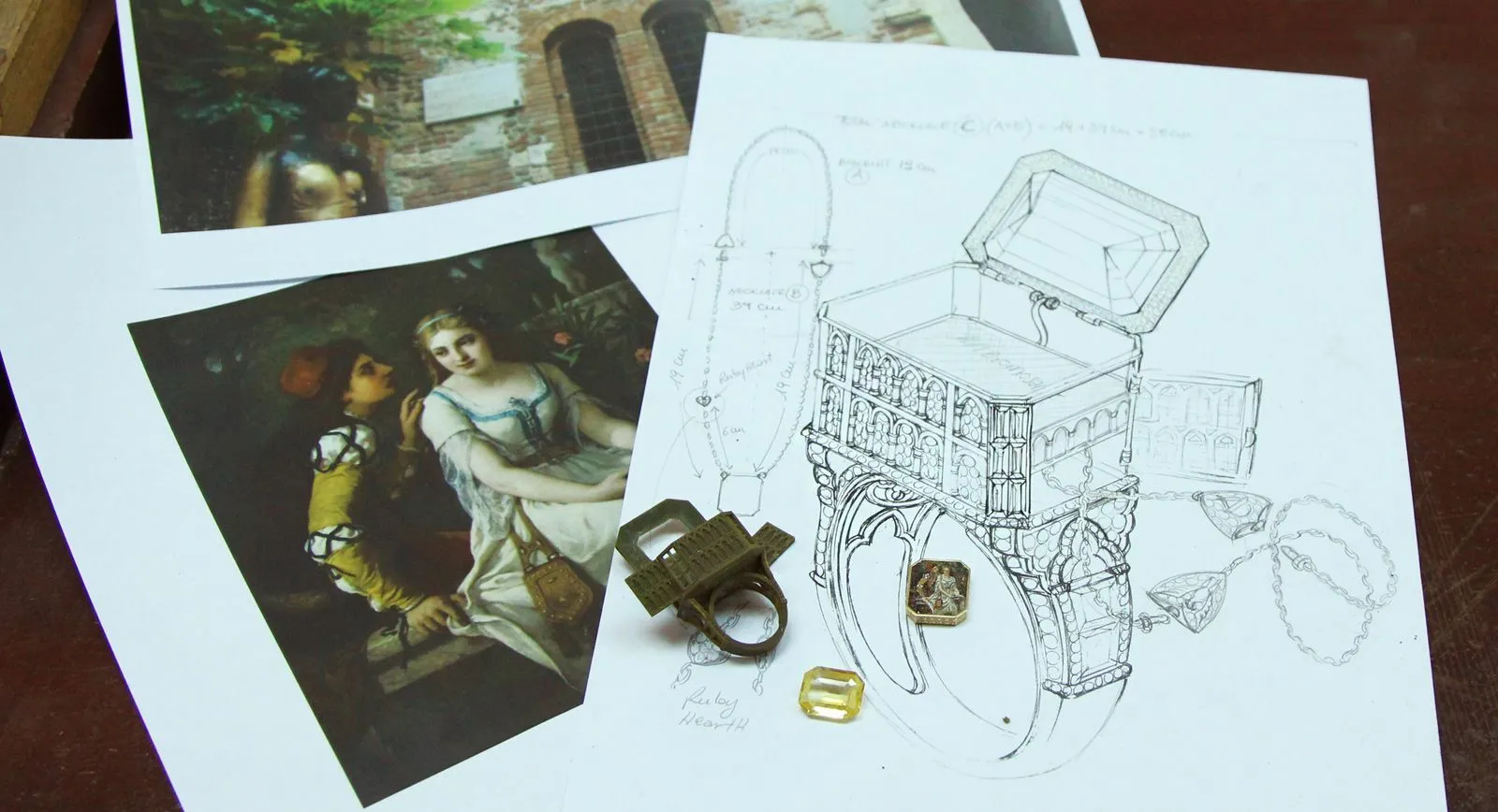 Florence and Milan are not the only cities which influenced the direction of the new collection, it included jewellery inspired by Venice, Rome and Verona. Venice found its reflection in the ring and earrings with the gondola and two famous bridges – Rialto and the bridge of Sighs, Rome – in the jewelled embodiment of the Colosseum rings and Verona – in the form of a scene from the Shakespeare play “Romeo and Juliet”.