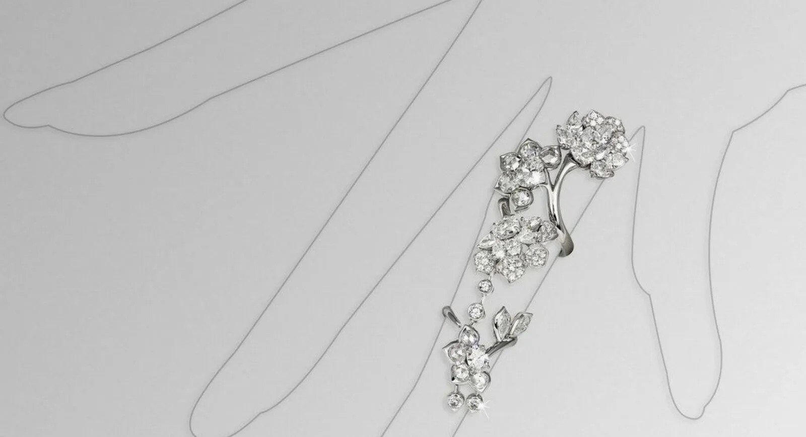 The Blossom finger ring, as they call it, features impressive 9.09cts of white diamonds. Stones of various shapes: round brilliant, pears and rose-cut ones burst with magnificent sparkle hidden within their light reflecting facets. I believe it is the mixture of cuts (and especially the rose cut diamonds) that makes this jewel so original and, certainly, very appealing.
