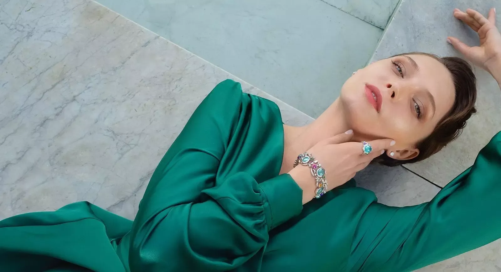 Model wearing Gübelin Jewellery Grace of the Sea High Jewellery Suite