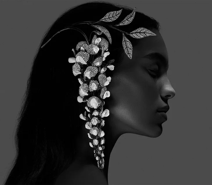 The collection is infused with Indian influence, including lotus flower motifs, interpretations of traditional turban ornaments and wedding bracelets, as well as the use of glyptics – the art of engraving gemstones. In an interesting twist, the collection is almost exclusively white… diamonds are everywhere and colour is used modestly and carefully in only one set. Choisne describes this as being “pure, clean, and maybe a little bit more subtle”. She adds: “The wonderful thing about using a lot of white is that it distinguishes [the collection] from other brands that have also worked with the Indian inspiration and used a lot of colour. For me, it was really important to avoid clichés.” The overall result is a remarkably ornamental and nuanced collection that has the power to transport us to a different time while anchoring us in the present. How many Artistic Directors can claim to have achieved such a feat!
