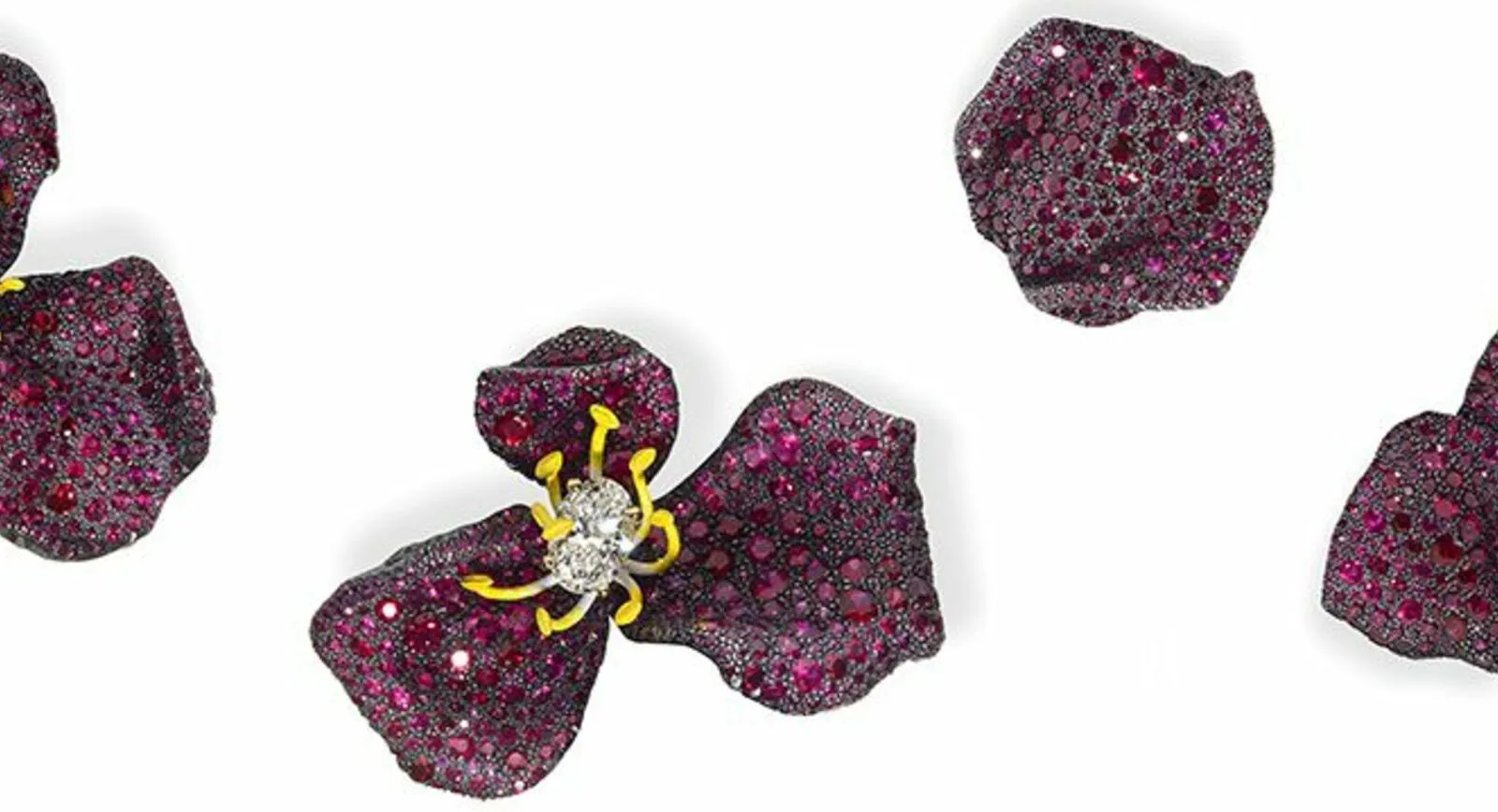 A very special set consisting of Ruby Rose Earrings and Brooch was originally created for Zhang Ziyi’s gown for the 69th edition of MET Gala in New York earlier this year. What caught my eye is a touch of silver used to create a striking visual effect and emphasise the contrasting black and red colours of the piece. The same technique was used in the original pair of Rose Petal earrings that was made with blue sapphires and presented in Paris in January 2015. Since it was the first time that Cindy used silver in her designs, I wanted to learn why she chose this material and how it helped translate her vision into such spectacular jewels.