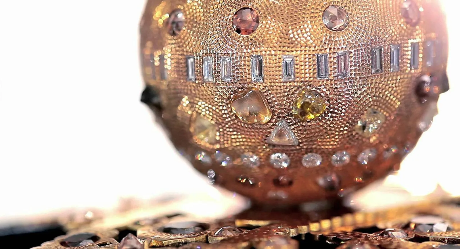 To mark the tenth year of their famous collection, De Beers have created a one-of-a-kind art piece, the Wondrous Sphere: a white gold sphere symbolising the genesis of Talisman. The incredible non-faceted, diamond at its centre, olive in colour, weighs 13 carats and is surrounded by a 3D sequence of rare diamonds which change colour in the light from one side to the other to reveal the mysterious origin of the Wondrous Sphere. The orb’s moving circles represent perpetual motion, which in turn embodies man’s constant striving for new discoveries.