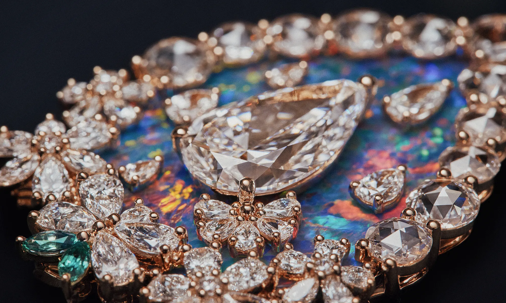 The best example of this is a necklace with diamond flowers that gently frame opal doublet inserts. This feels like a bold move for Dior Joaillerie, especially in high jewellery, as doublets are not typically associated with high-end luxury in the same way as investment minerals. However, Victoire de Castellane went against tradition for the sake of a spectacular design, which has certainly captured our attention. By the way, this jewel is unique not only because of its opals – it also features a detachable central emerald.