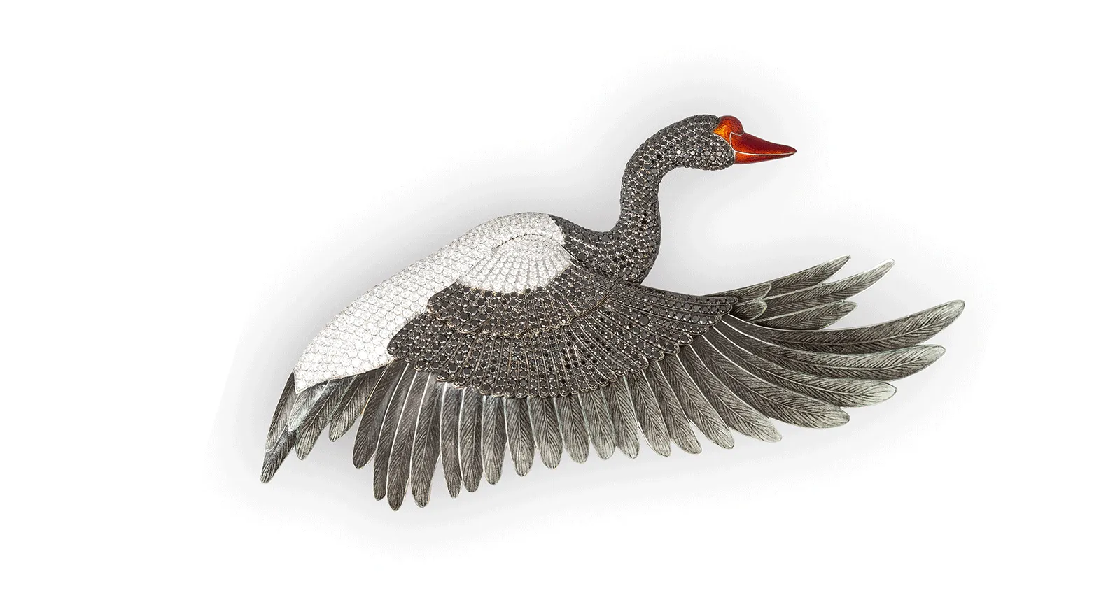 Are you already looking forward to seeing the masterpieces that brought Ilgiz international recognition? Well, apart from them, you will get to see his early works. I don’t want to talk about all the exhibits right now, but I sure want to tickle your fancy with a brief preview. You will see the Black Swan brooch in white gold set with black and colourless diamonds, embellished with hot enamel details. It will be showcased along with the Magpie brooches in yellow gold with colourless, black diamonds, sapphires and rubies. Both these pieces will surely come with very exciting and original ‘company’!