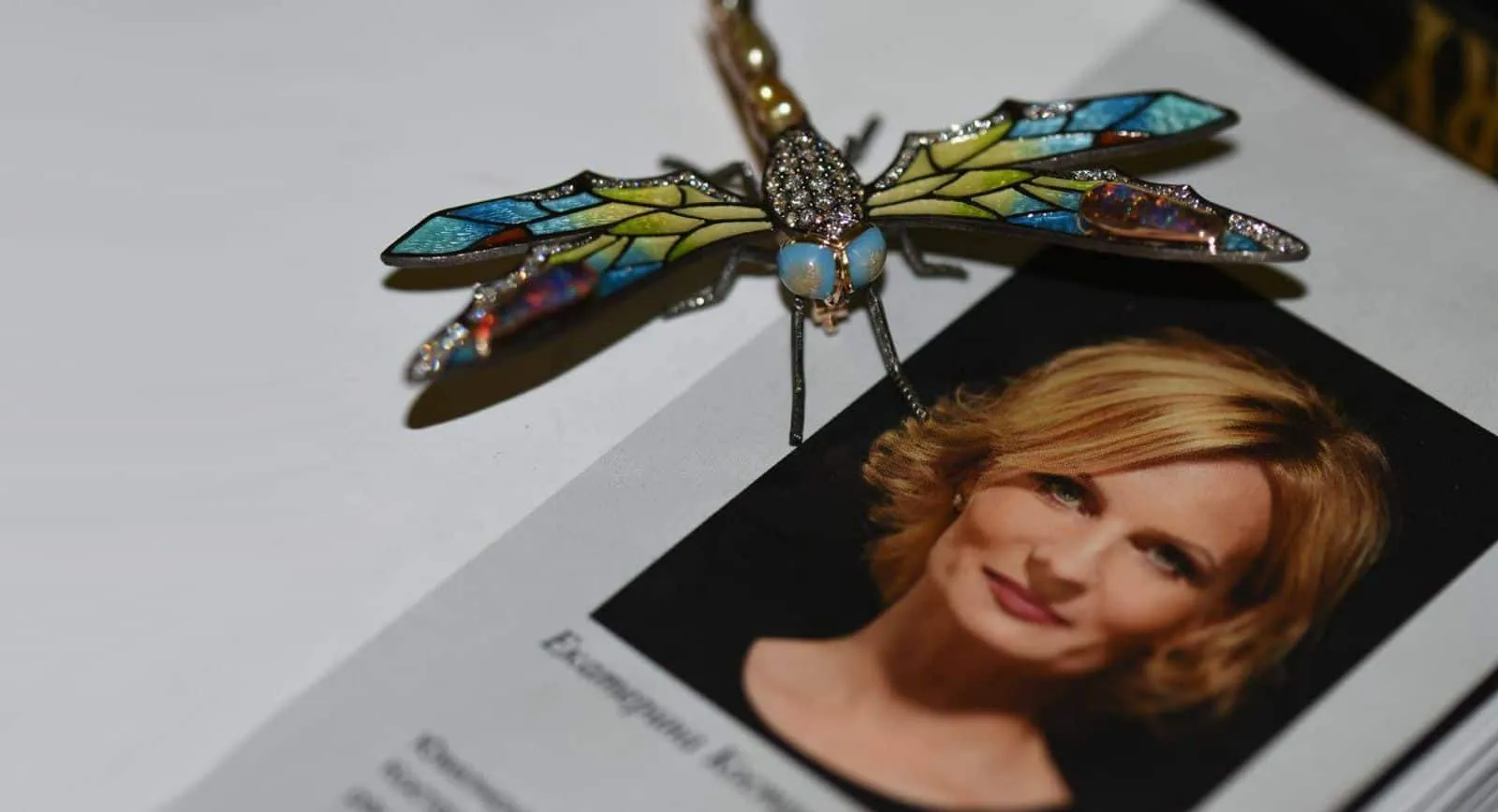 Ekaterina Kostrigina opal brooch and ring with diamonds