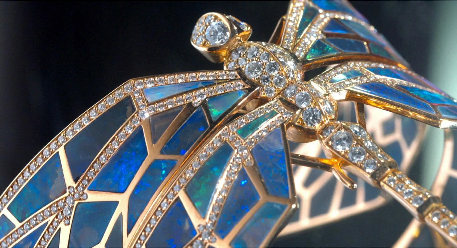 Libellule Opale Cuff by NUUN in rose gold with diamonds totalling 5,10 cts and opal totalling 120 cts