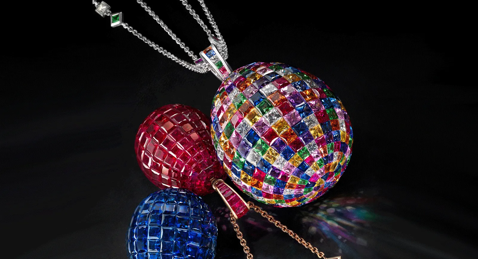 Jewelled pendants were made in three versions – red with Mozambican rubies weighing 43.82 carats in total, blue with sapphires and multi-coloured with tsavorites, diamonds and coloured corundums, mounted in an invisible setting. Such a mounting was first used by the House of Fabergé at the beginning of the twentieth century and involves the setting of ideally sized, precisely cut stones in such a way that the metal between the stones is not noticeable. Such a method enabled the creation of a flawless mosaic surface.