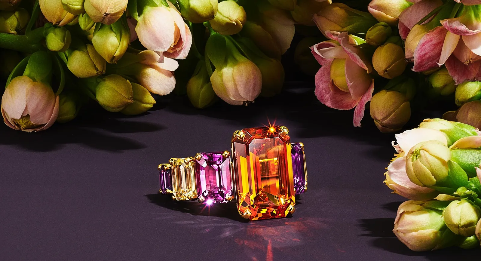 Last year I published an article about a selection of luxury jewellery featuring traditional blue sapphires, so I thought it was about time to reveal the rest of the rainbow. In the process of formation, the colour of corundum, the family of stones to which sapphires belong, is determined by the traces of iron, chromium, copper, titanium and magnesium that are present in their chemical composition. That is why we find sapphires in almost every colour, including pink, peach, orange, yellow, green and purple.