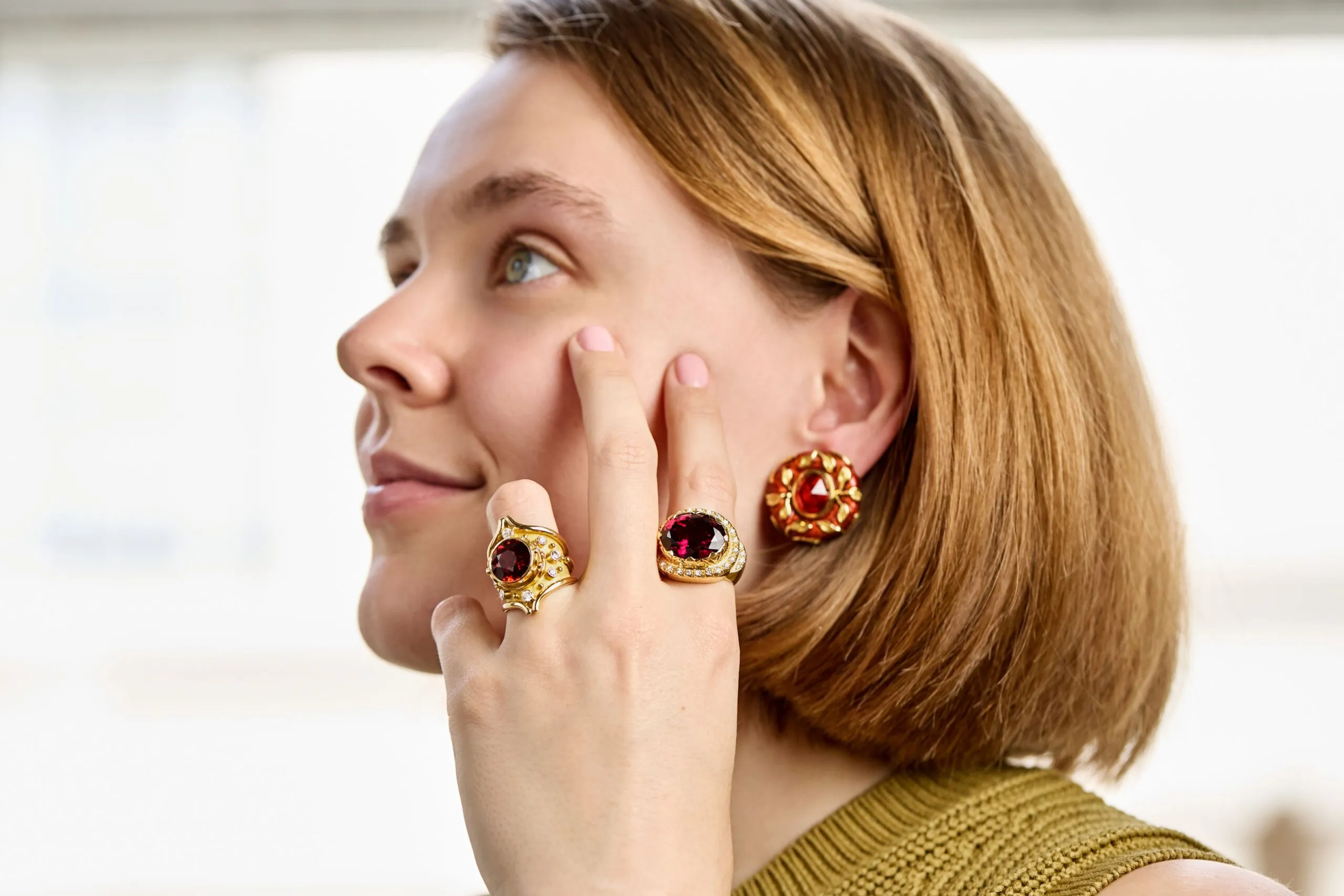 The trick, as Elizabeth Gage puts it, is to plan ahead and consider the weight distribution to ensure comfort, whether the piece is a ring, pendant or earring. As Garnazelle’s Celine Rivet points out, the setting should be inconspicuous, allowing the majesty of the stone to take centre stage. So whether it’s about balancing proportions or playing with new techniques, the beauty of a deep stone lies in its unique ability to inspire bold and thoughtful design choices.