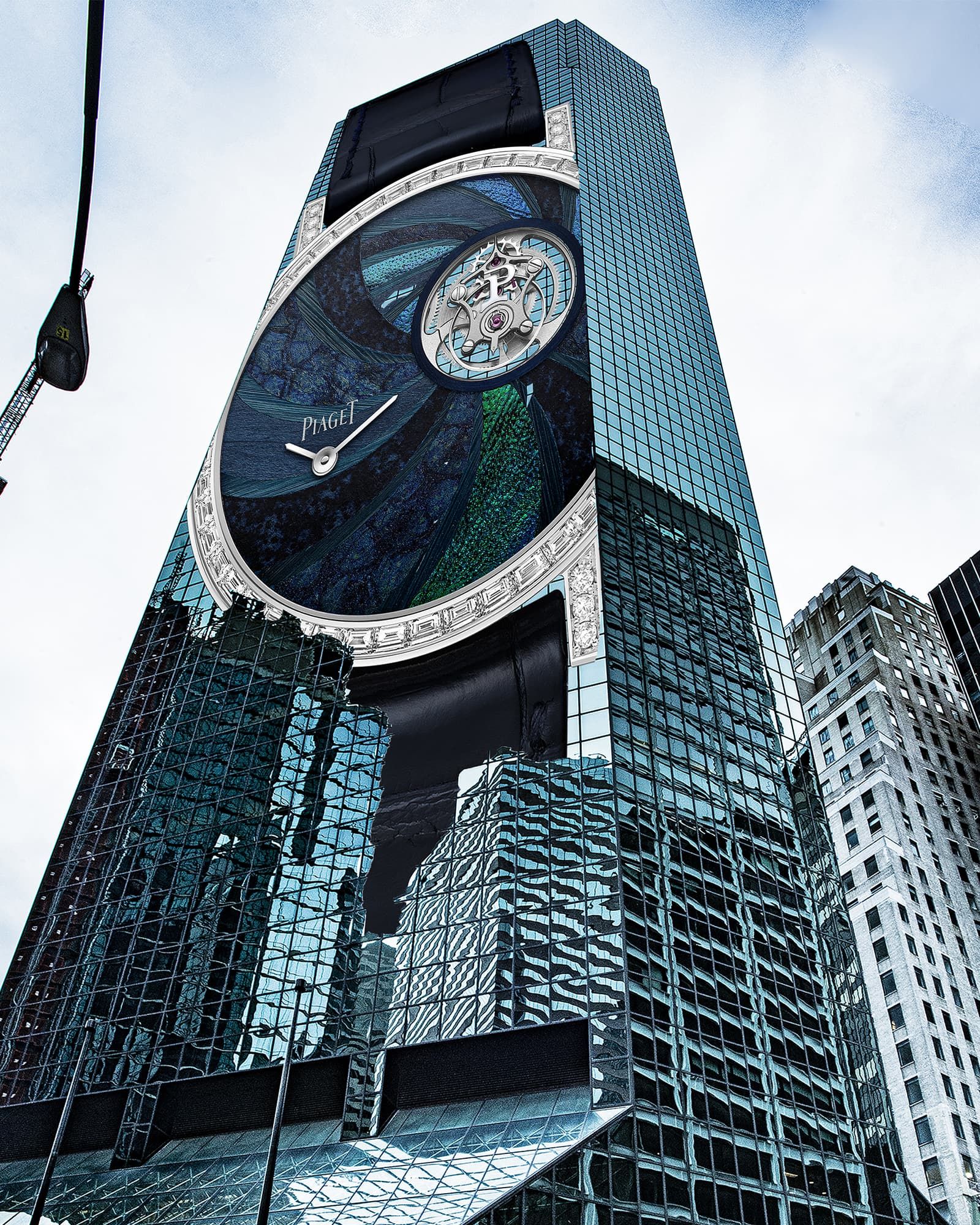 A Piaget timepiece transforms the facia of this skyscraper in a new ‘archellery’ photo artwork by Veronica Morales Angulo