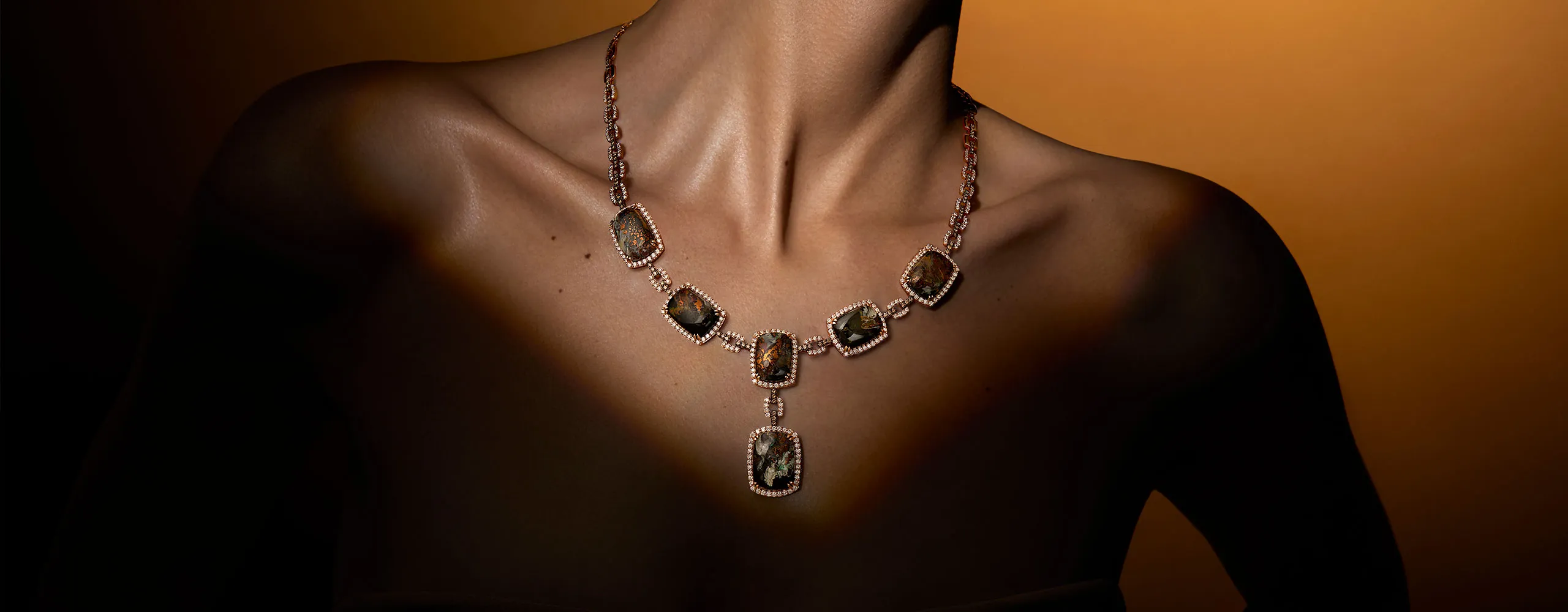 Next is Serenity – A Breath of Calm, which taps into the relaxing oceanic hues of Australian boulder opals, ombré Montana sapphires, Paraiba tourmalines, topazes, tourmalines and more. Personally, I was drawn to the Emerald Ombré™ rings as it's not so often you see a gradient of bluish-green and forest-green beryls in a single piece. Fans of mystic teal-green shades will love the brand's Hunter's Green Tourmaline™ selection, including elongated pear-shaped drop pendants and trilogy rings. You will also find more aquadite in this offering, albeit with stormy inclusions, as well as sapphires, Art Deco-inspired lengths of topaz, and chunky turquoises, which will no doubt look great alone or stacked together.