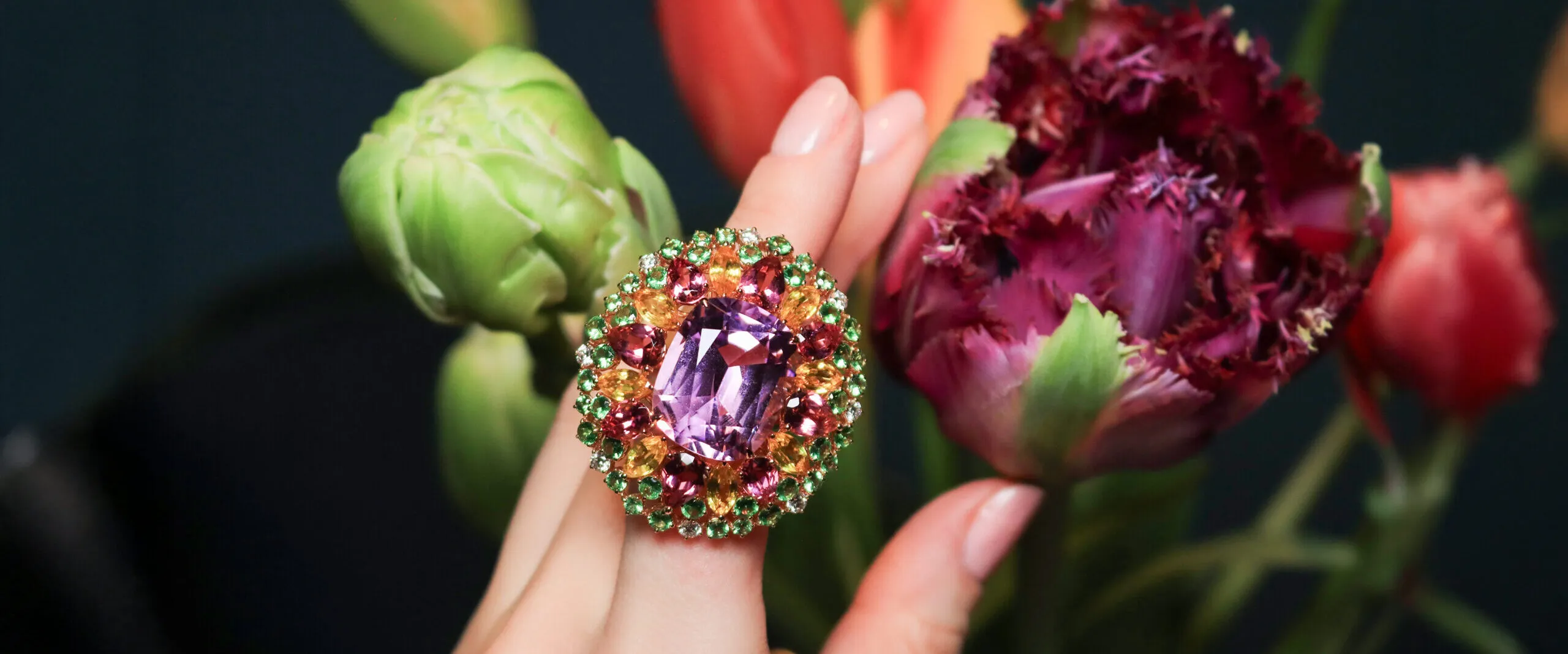 So, as you can see, this is an exciting time in the Margot McKinney calendar. When you look at the pieces pictured here, just remember the size of the gemstones, the sophistication of their placement, and the subtlety of the colour combinations. Achieving this feat with a mineral weighing more than 100 carats is far harder than you might expect. Fortunately, Margot McKinney, both the woman herself and the four generations of family passion that she represents, are well-versed in making big gems look effortlessly elegant.