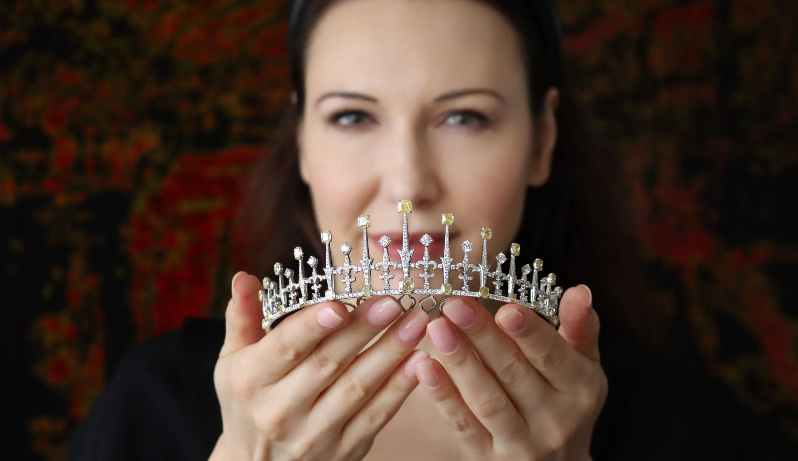 Royal Crown tiara by Narcisa Pheres comprising 537 white and yellow diamonds set in 18k white gold