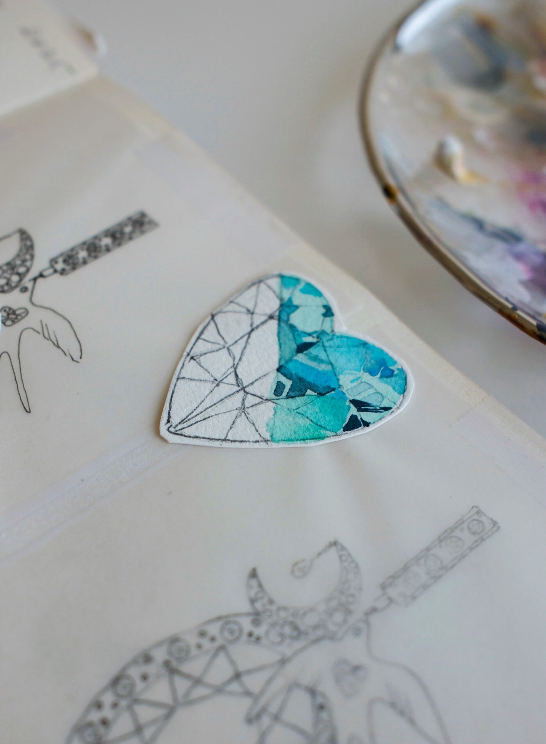 The one-of-a-kind painting of a bespoke earring design created as part of a collaboration between watercolour artist Polina Bright and Katerina Perez