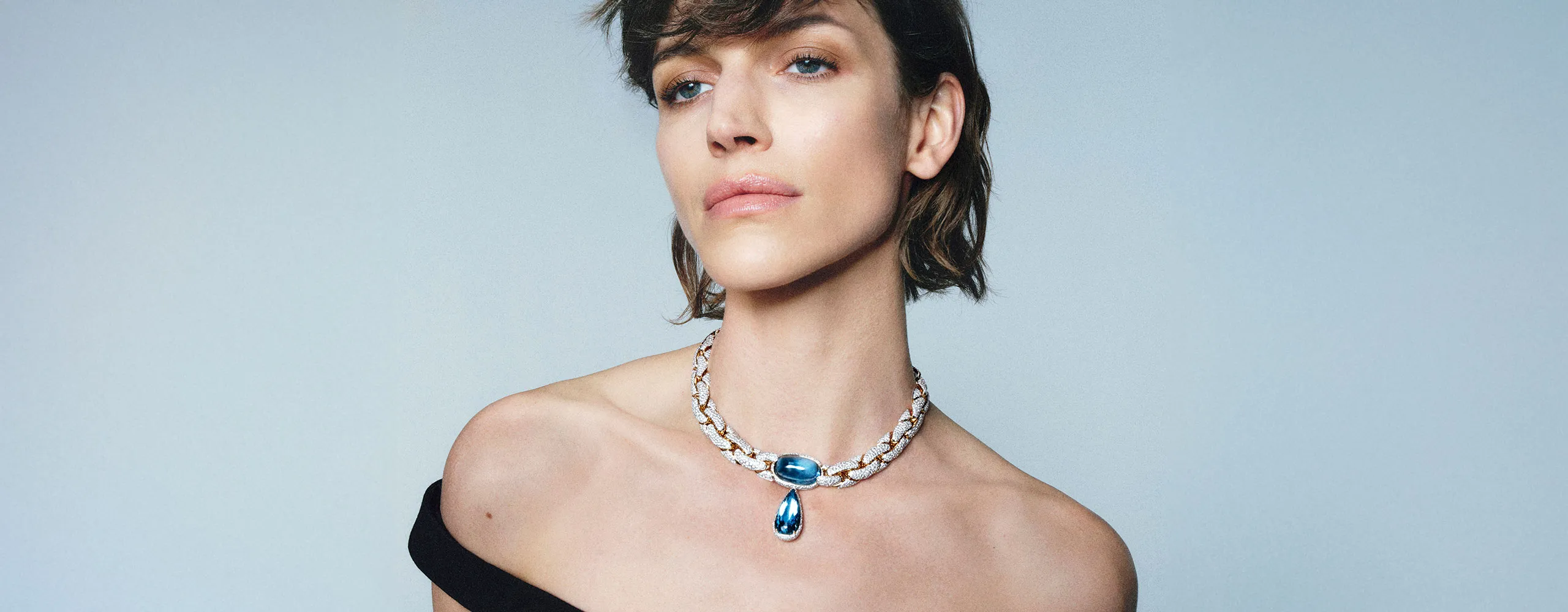 In this chapter of Collezione 1967, we find 20 new pieces, including The Art of Chains bracelet that layers four different chains in rose gold, white gold and pavé-set diamonds, complete with a rectangular-shaped pavé-set diamond clasp. The remaining pieces are more colourful in nature, typically set with a single large, coloured gemstone as a showstopping centrepiece. Examples include the Yellow Diamond Moon with a 12-carat fancy light yellow diamond set on a diamond-pavé gourmette and round link chain; the Blue Chain Cascade necklace with round and oval-shaped links leading to a 22.23 carat Ceylon sapphire; the Aquamarine Dream necklace with dégradé links that gradually increase in size, a 37.98-carat aquamarine cabochon and a pear-shaped aquamarine drop of 15.95 carats, and the Precious Spring belt, which transforms into a bracelet and pendant, crafted in rose gold with baguette-cut diamonds and pavé-set white diamonds.