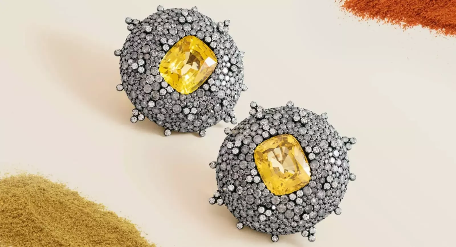 JAR earrings with oval-shaped sphenes, coloured zircon and diamond earrings in gold and silver, due to be sold at the Christie’s Magnificent Jewels auction on 17 May 2023