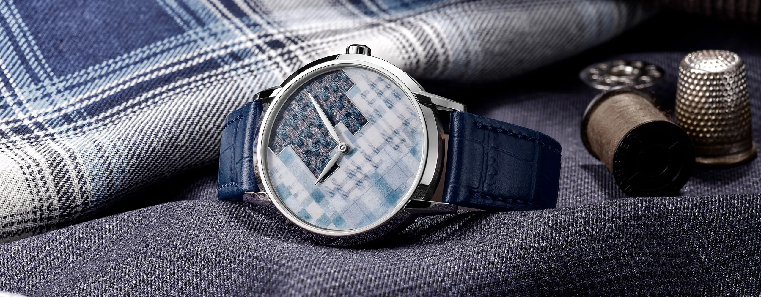 The first creation – Savile Row – pays homage to the language of tartan and its important history in the Highlands of Scotland. As the brand explains: "Each shade, each intersection evokes Scotland's untamed landscapes, from windswept moors to winding rivers carving deep valleys. Both rigorous and fluid, this fabric has graced haute couture runways, embodying a perfect balance between tradition and modernity." Here, we see the Savile Row interpretation of tartan through the lens of formal tailoring, captured through engraving, multi-layered enamel, miniature painting, and graphic patterns in a palette of blue hues.