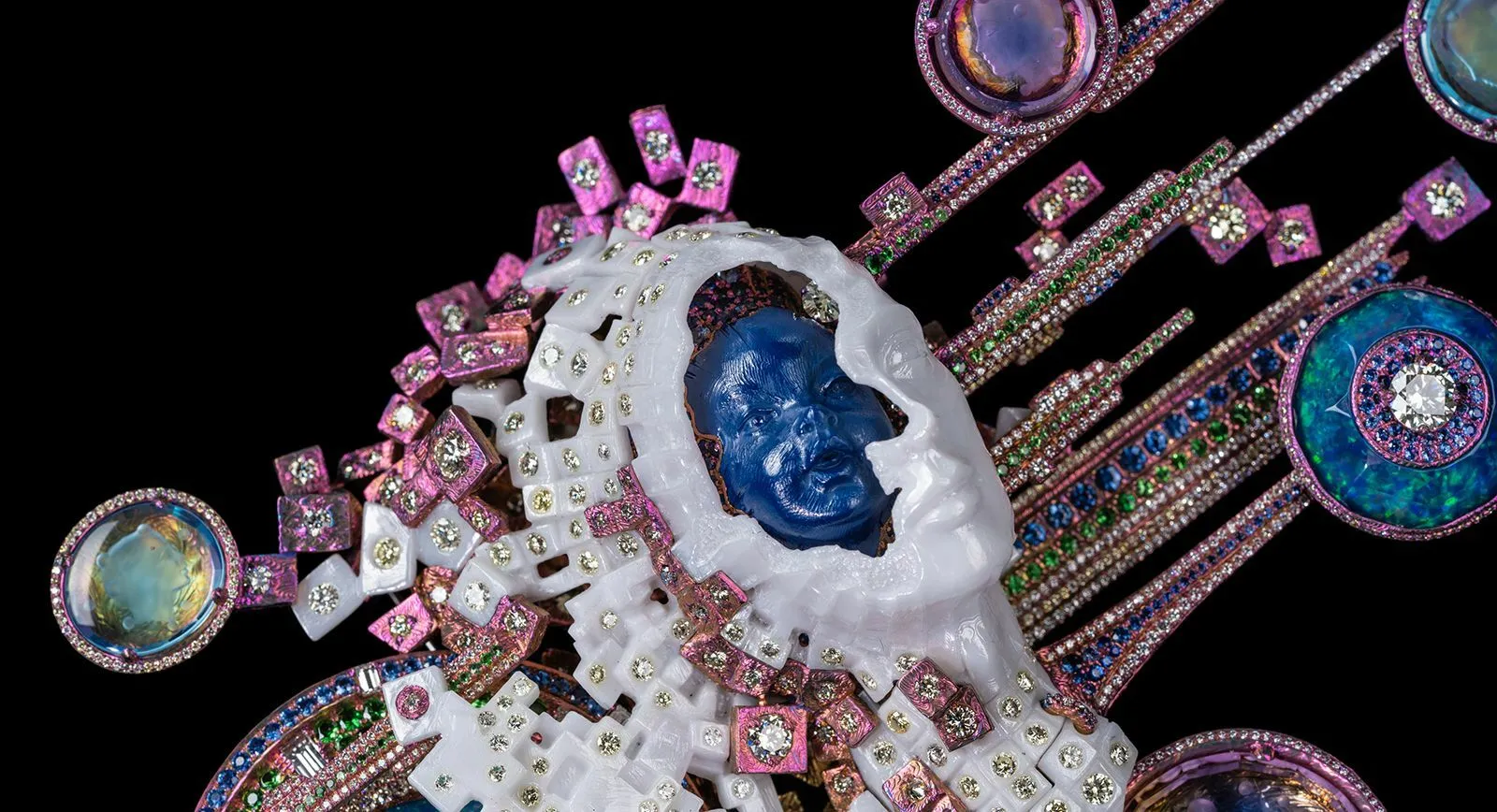 One of the first names that springs to mind when we are in the realm of master jewellers is Wallace Chan, and the inimitable artist will be displaying his recent works at TEFAF 2020. Several of his latest creations feature his patented, original material invention ‘The Wallace Chan Porcelain’ – including the Cosmic Destiny, Mind Puzzle, Garden of Dreams and the Keeper of Time Necklace – will all be exhibited at TEFAF. The Windows to the Universe Parure is a typically elaborate, flamboyant symphony of vivid materials in abstract, surreal, and even fantastical forms. The necklace of the parure contains pearls, diamonds, pink sapphires, green tourmalines, tsavorite garnets, white agate, lapis lazuli and titanium to name but a few precious materials with which this artist creates.