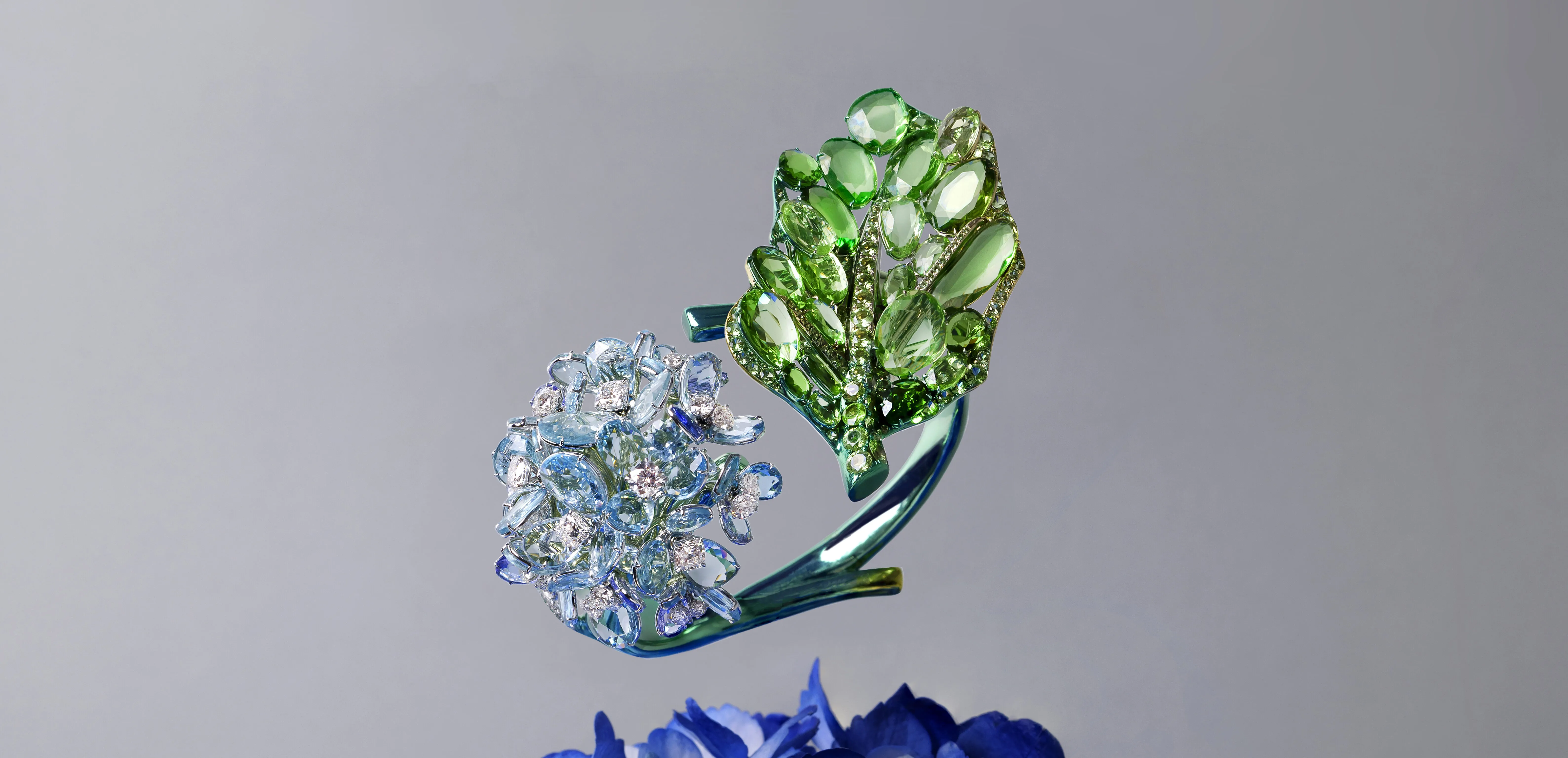 Anna Hu is also returning for the fourth year with an edit of 50 designs reflecting two main themes: nature and Chinese culture. Her stand will be divided into three distinct areas, including one that highlights the pioneering technology of nano-electroplating titanium, which is definitely worth exploring in more detail. As 2025 is the Year of the Snake, Anna will present the Cleopatra collection, inspired by the Queen of the Ptolemaic Kingdom and her strength, beauty and intelligence. The eye-catching Cleopatra necklace is the star, with 225 spinel pearls (245.07 carats), 247 yellow diamonds (8.45 carat), 214 green sapphires (10.61 carats), 248 diamond beads (110 carats) and three 3.64-carats of round brilliant-cut diamonds. The Dance of Butterfly collection will also be represented by the Midsummer Dream Butterfly brooch with a 7.26-carat chrysoberyl, canary tourmalines and diamonds in nano-electroplated titanium.