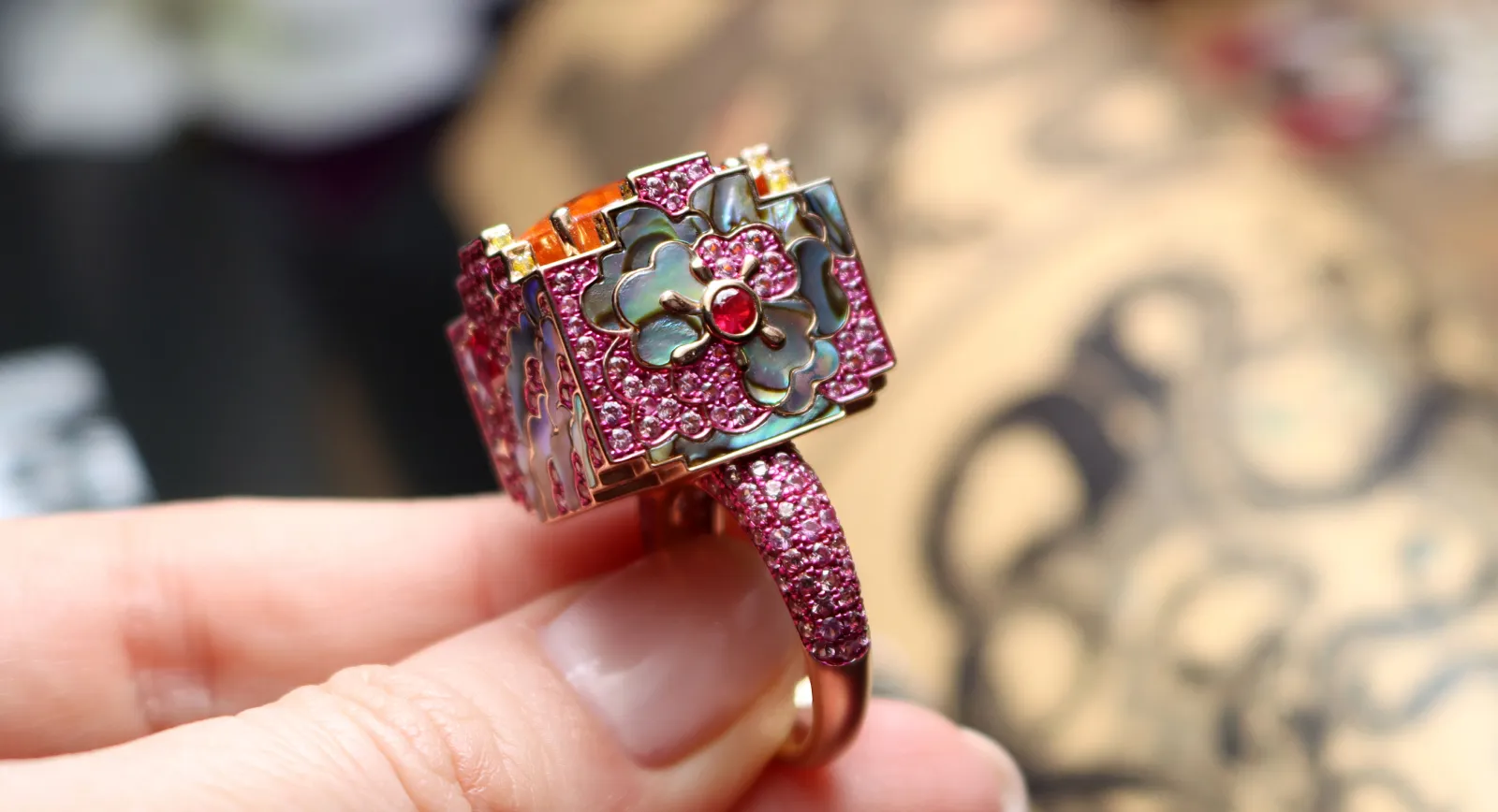 Recently, Austy has been working on three new series of works, each with its own ideas and inspirations behind it. The first centres around a distinctive white crystal cutting theme, while the second “delves into the realm of peculiar cubes crafted from unconventional materials”. Lastly, there’s a series related to the “charm of cutting fruits,” which has resulted in a vibrant and fresh high jewellery offering according to the designer.
