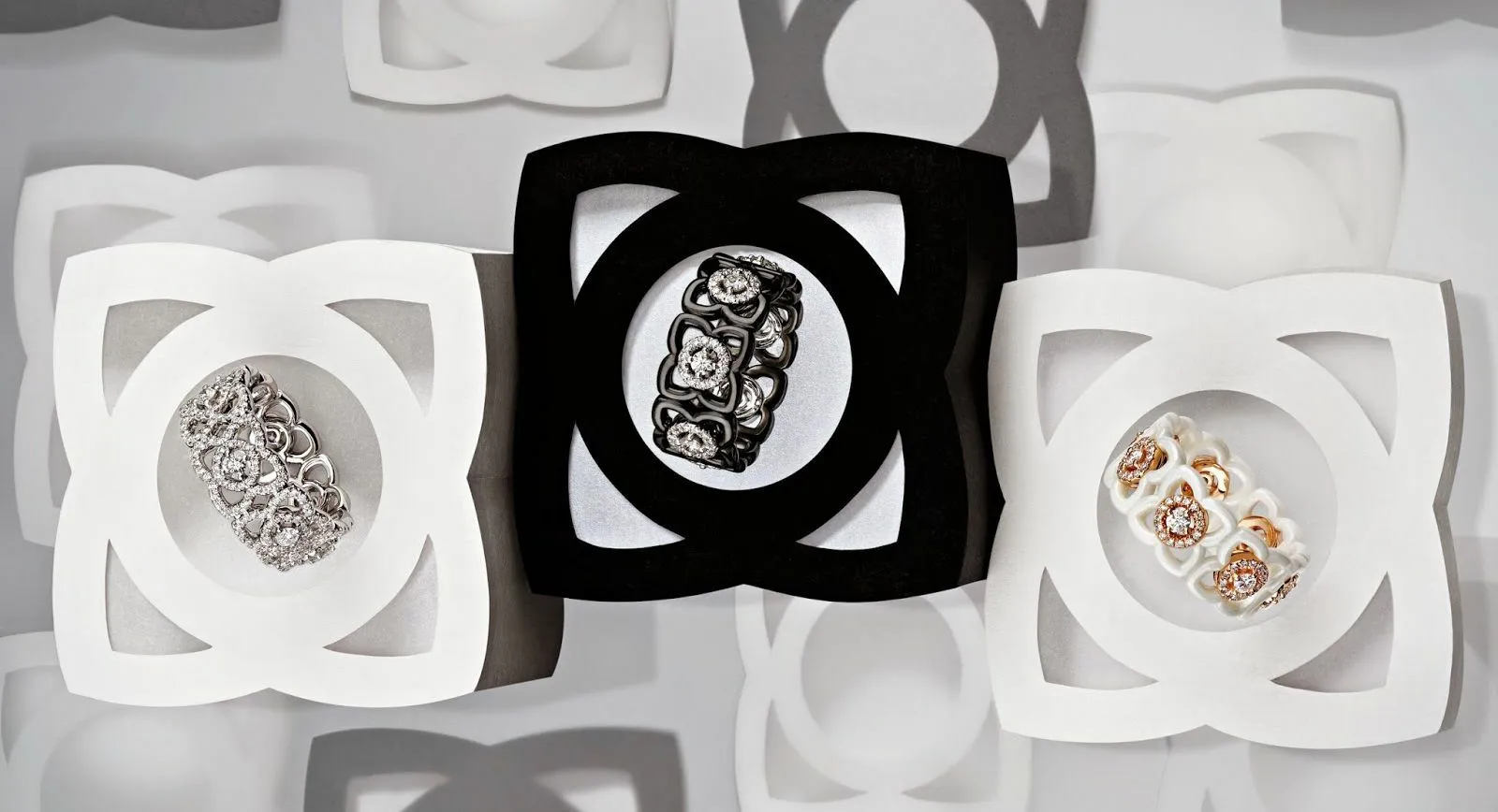 De Beers, meanwhile, has fashioned the perfect Christmas present: the delicate Moonlight Lotus Band ring made from black ceramic, white gold and diamonds. The black ceramic and white gold of the band reflects the mysterious side of the moonlight shining with serenity.