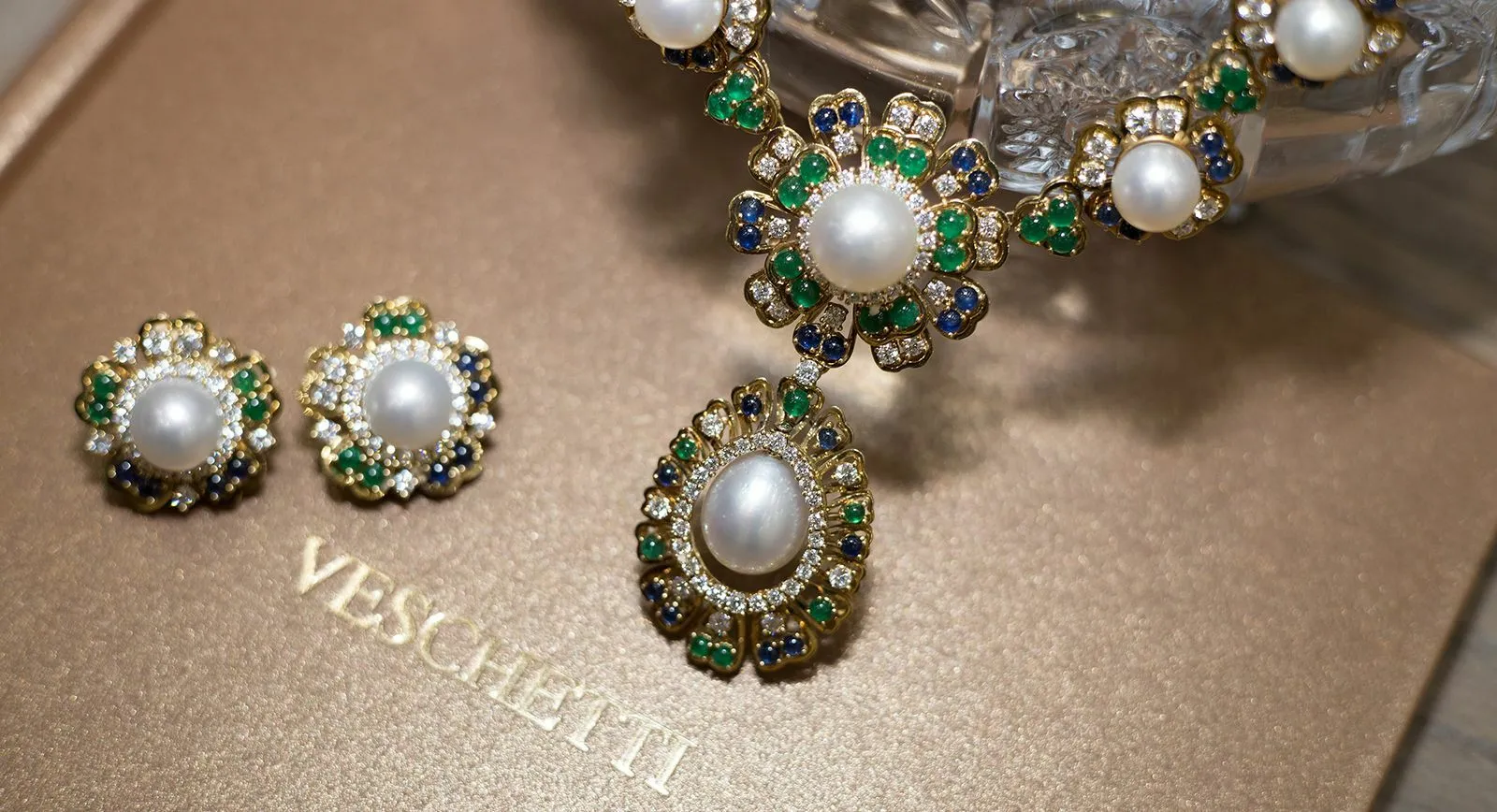 What is statement jewellery? It’s a question that I recently endeavoured to answer more fully in this article, which considers shape, dimensions, surfaces, carat weights and everything in between. When I am asked to point to a “statement jewellery brand,” I often mention the Italian brand, Veschetti, which in my opinion has mastered the art of “statement” through colour, size and scale. The brand presents a type of Italian maximalist glamour that has infused its creations since it was established in 1949.