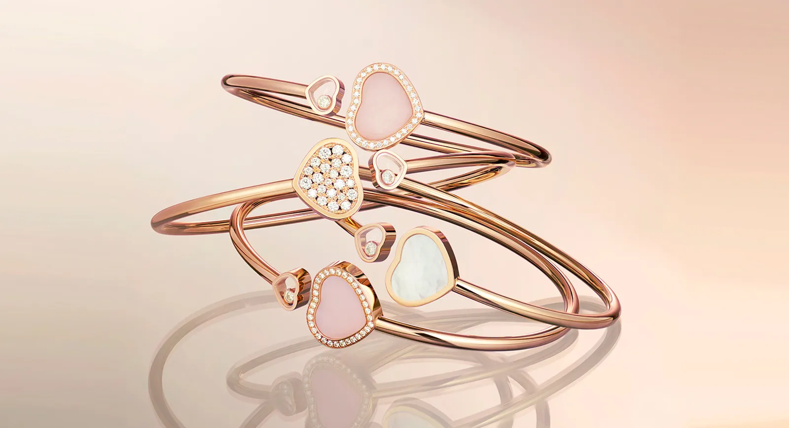 Happy Hearts bangle in rose gold, pink opal and diamond