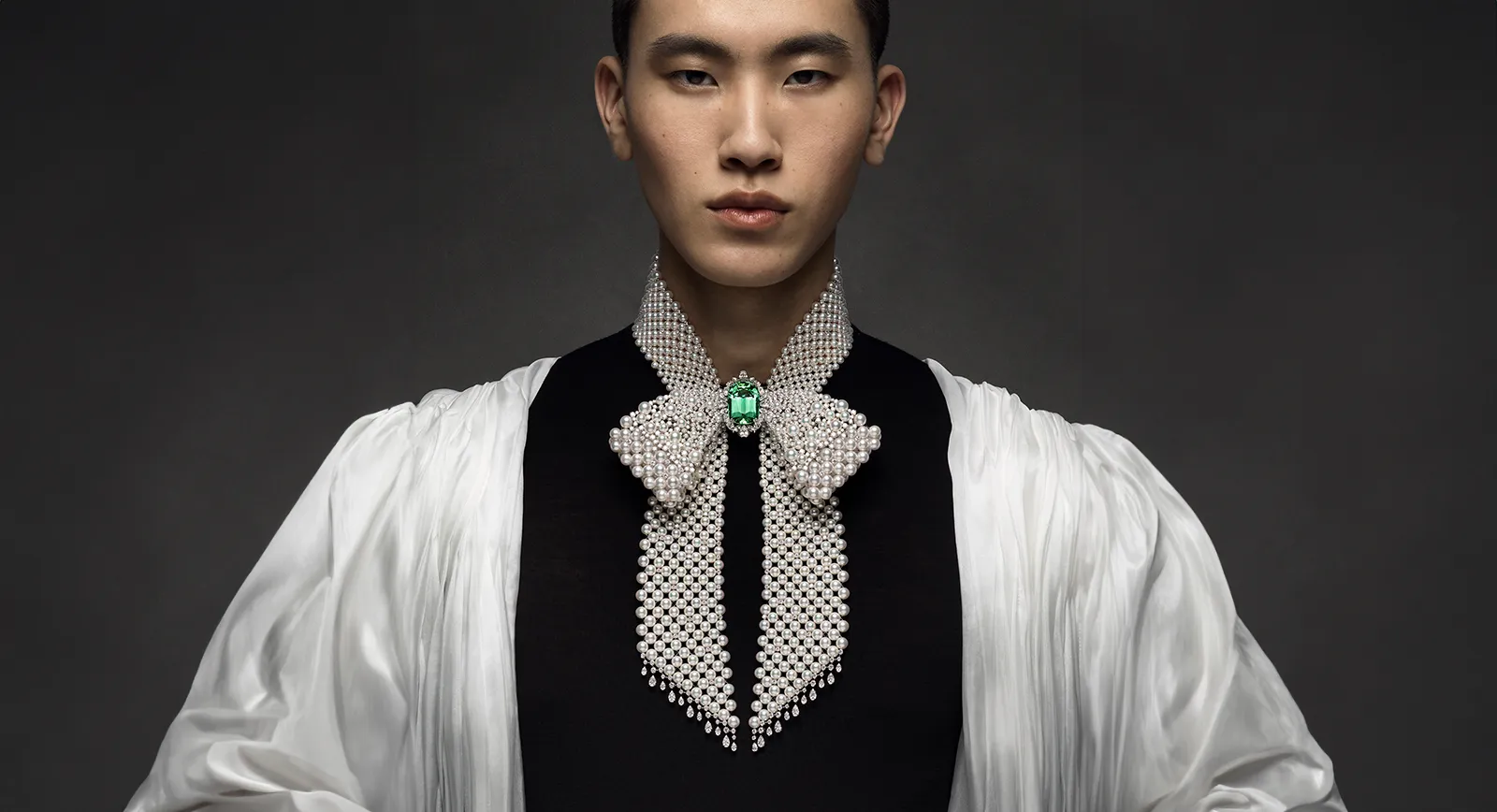 Alongside the vibrant pops of sea green, deep blue and rich pink minerals, there are intriguing body jewels that drape around the shoulders, across the entire chest and around the waist in the form of pearl belts. These aren’t armour… they’re far too feminine to feel like a shield to the world. Instead, ‘The Bows’ is presented as its own form of couture clothing, which is not dissimilar to the approach Boucheron has taken this year too. Should the wearer not wish to feel quite so encased in finery, many of these new Mikimoto masterpieces are transformable – necklaces becoming brooches, for example – allowing for versatility and more unisex appeal.