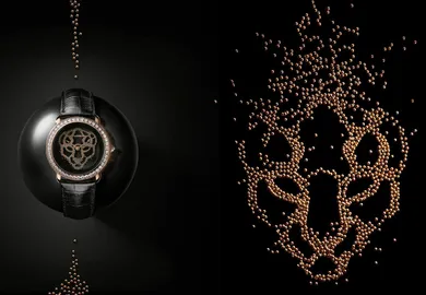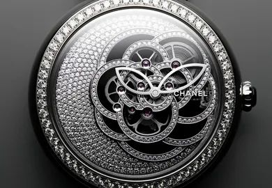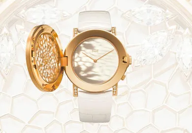 Another Swiss luxury watch brand that is listed among the most well-known watchmakers in the world are Corum. This year they introduced new jewelled models of their popular Golden Bridge design in white and pink gold as the ‘Corum Golden Bridge Round 39mm’. As a jewellery writer, I was particularly drawn to the timepiece featuring an opulent ‘lacework’ of diamonds set within the brand’s famous linear movement. The combination of brilliance of the marquise cut stones and the openwork setting gave the impression of light emanating from the movement itself. All in all, it is a perfect marriage between embellishment of a classic diamond cocktail watch, and the mechanical prowess of an expert watch company.