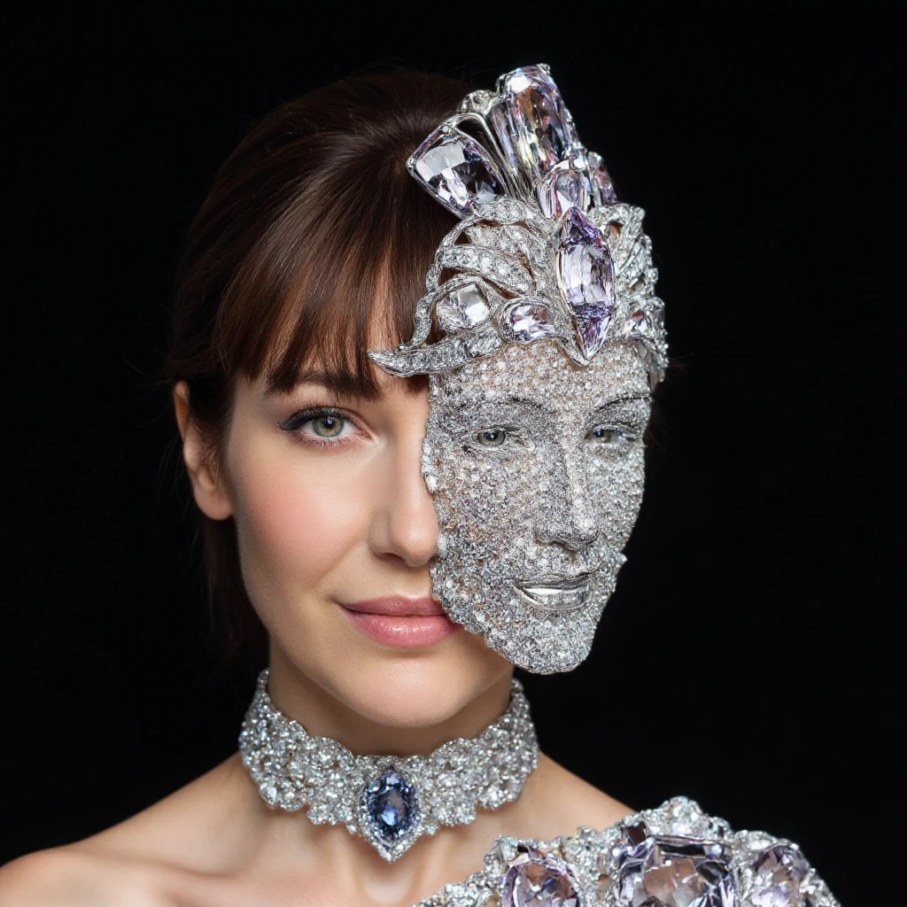I have always been interested in the intersection between jewellery and art, whether that’s traditional drawing, painting and sculpture or more contemporary forms of digital creation. When I first stumbled upon Anastasia Rogozhina’s work (see her Instagram gallery @ai.castle), I was immediately impressed by her command of light, shade, depth and dimension. All these factors are required to ensure high jewellery is accurately and convincingly rendered in the digital space. Otherwise, the pieces look two-dimensional and lacklustre. Anastasia has built an outstanding portfolio of work thanks to collaborations with global brands, such as Versace and L’Oréal, and coverage in the New York Post, Le Monde, Business of Fashion (BoF), and Business Insider. Plus, if you are engaged with the concept of AI Fashion Week, you may very well have seen Anastasia’s work presented alongside some of the world’s most influential digital creators.