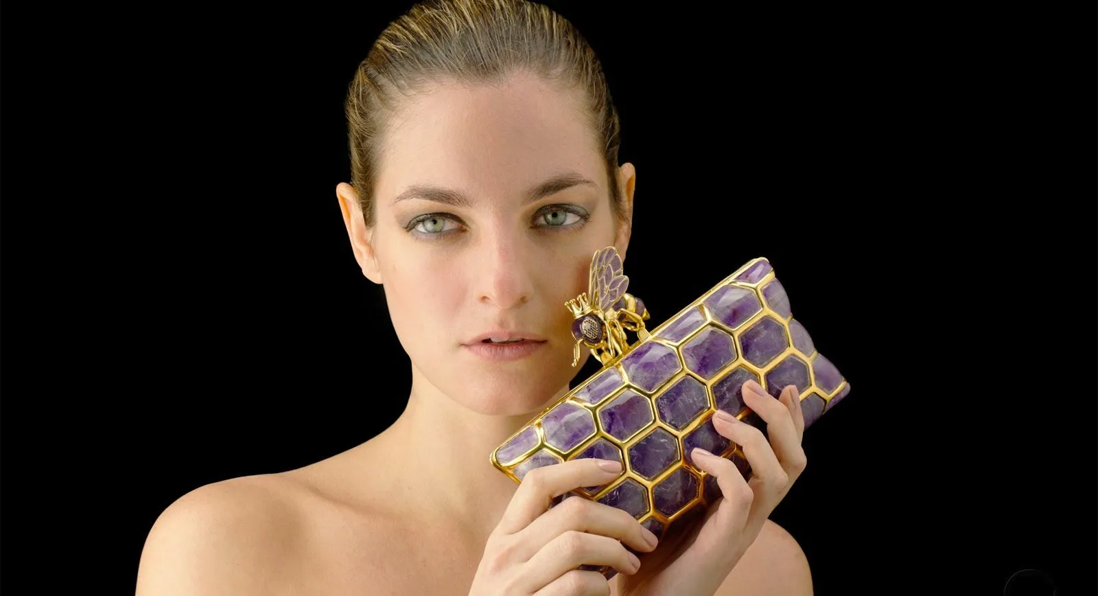 The Peruvian stonecutter Luis Alberto Quispe Aparicio is praised for his sculptural creations made of metal and gemstones. His love for the art of stonecutting is reflected in multiple ways. His lapidary creative studio L’AQUART produces drinking receptacles, pens and cigar boxes, as well as clutch bags, made with precious stones. Luis Alberto has won women over with his “Queen Bee” – an evening clutch bag available in different colours: red ruby, blue lapis lazuli, purple amethyst, almost transparent quartz, green jade and yellow-brown tiger’s eye. Creating each bag takes 500 hours of work, so the value of this accessory lies not only in the materials used but also in the labour-intensity of its creation.