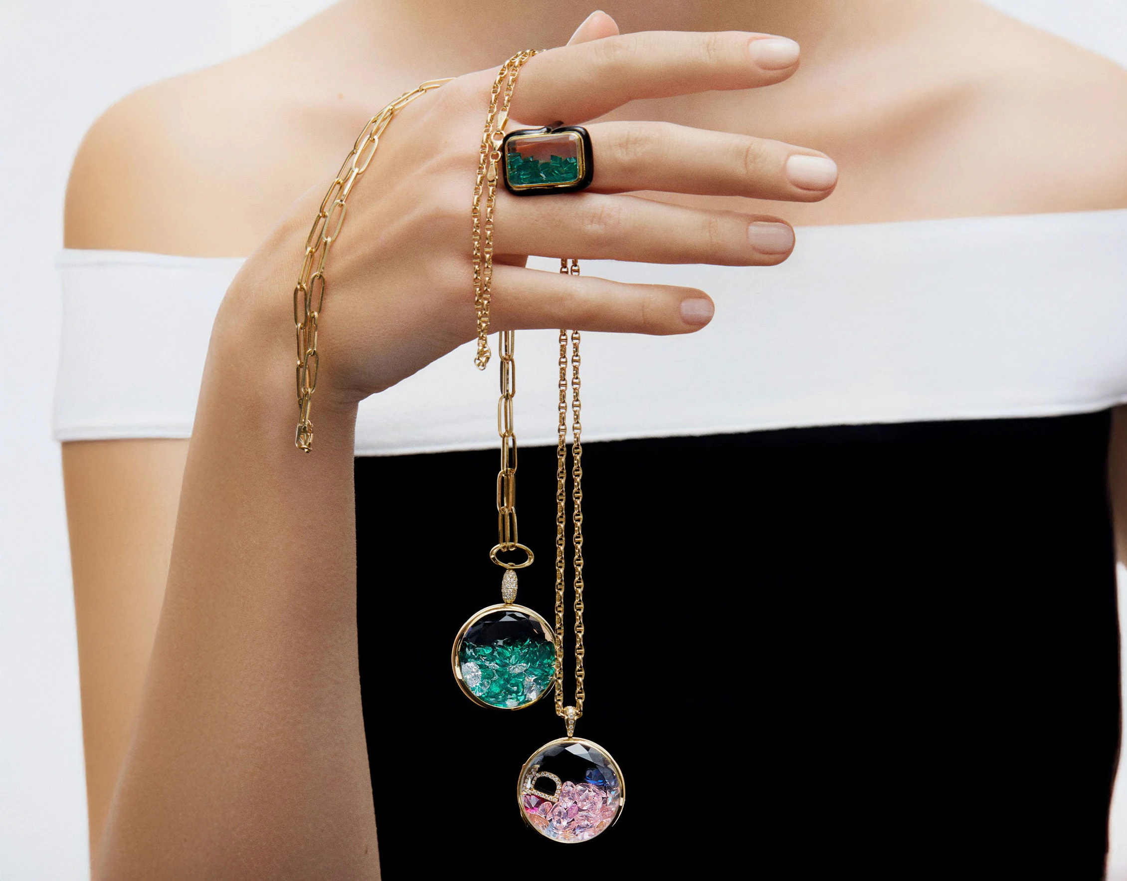 Created by mother and daughter duo Yasemin and Nisa, Turkish brand Aponine is rooted in their shared passion for vintage jewellery, coloured gemstones and fashionable day-to-night dressing. Its Pebble collection, for example, taps into more unusual colour palettes with burnt orange sapphires and misty green tourmalines, while the Sparks collection gathers loose gemstones in medallion-like lockets for a cool splash of colour (the sunshine crystal mix is especially uplifting). Mixed in with these more statement pieces are hugely wearable and stackable creations, like the Wave and Twirl rings, the Bubbles necklace, and a range of dangling charms with tanzanites, rubies and raw-cut diamonds. Booth No. 806