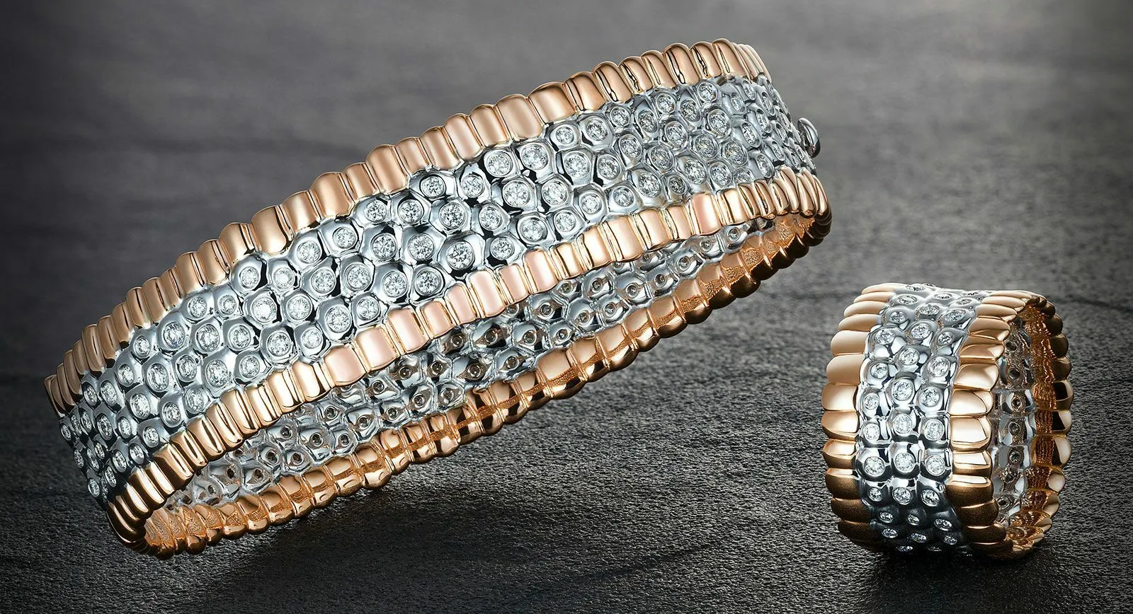 Julien Riad Sahyoun – Just Revolution Skin collection bracelets in white and rose gold