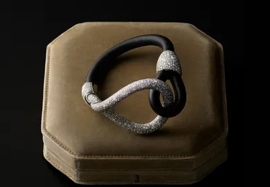 The tradition of creating jewellery art objects has also been revived in the Chanel workshops. A table clock was presented in the collection Les Blés de Chanel, and in the Coco Avant Chanel collection there is an exquisite fan. Creating this particular accessory – a hark back to the past – took 18K white yellow and rose gold, pearl, carved quartz, satin and… lots and lots of diamonds: a 0.30 carat round diamond, 3 lavish diamonds at 0.87 carats and 262 classic cut diamonds weighing a total of 6.95 carats. One gentle movement of the hand and suddenly the air is filled with illuminated, sparkling light.